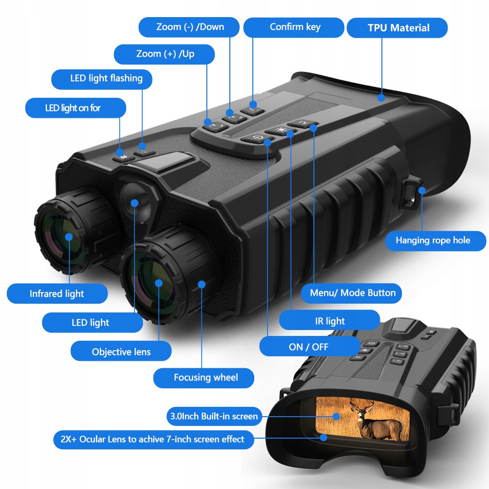 6. Великий дисплей: бінокль має 3,0-дюймовий екран 640*360 IPS та 2,5-кратний скляний скло для легкого та чистого перегляду.