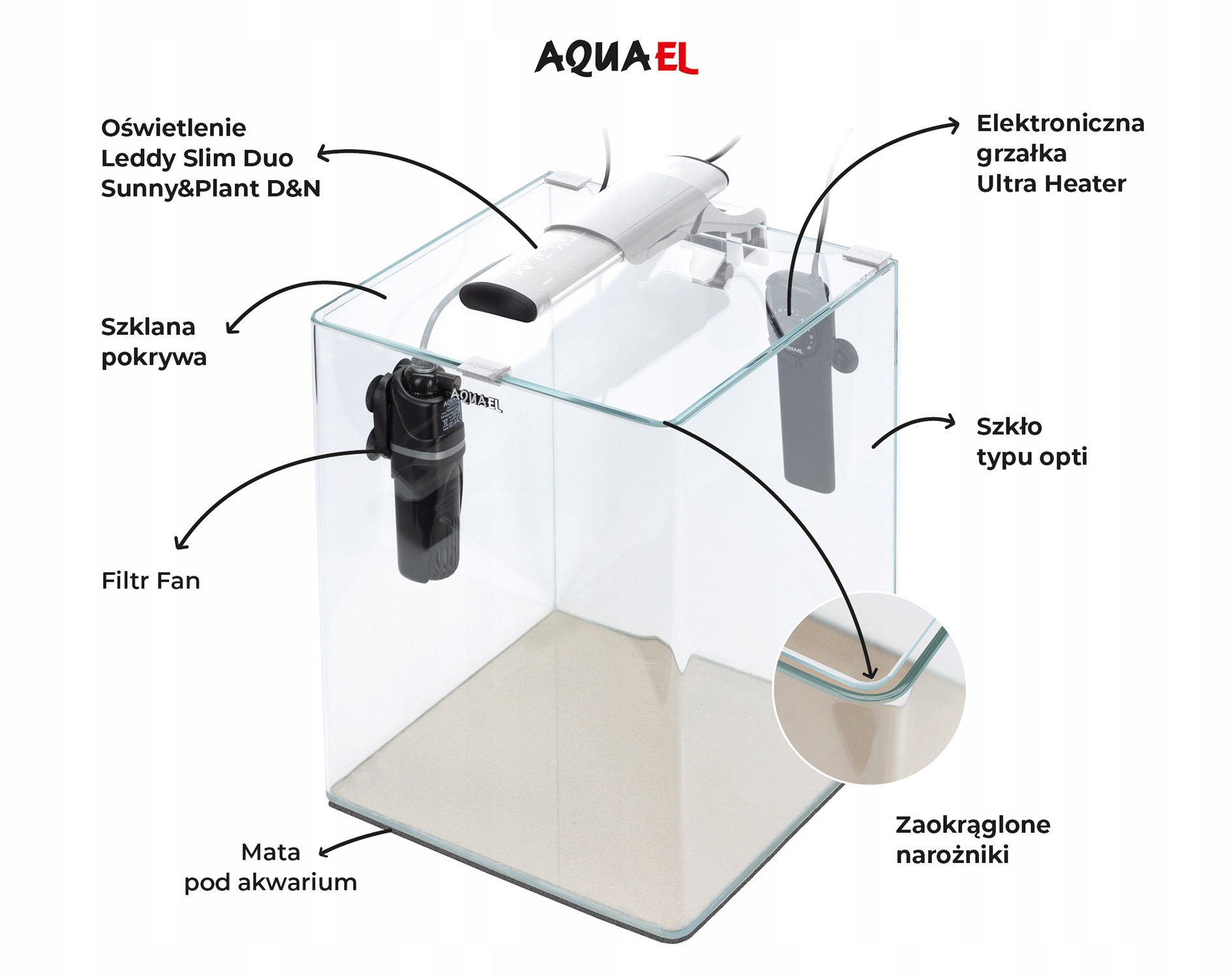 Бачки AQUAEL OptiBent Set виготовлені зі скла OPTI з підвищеною прозорістю та закругленими передніми кутами - без стандартних силіконових з'єднань b>
