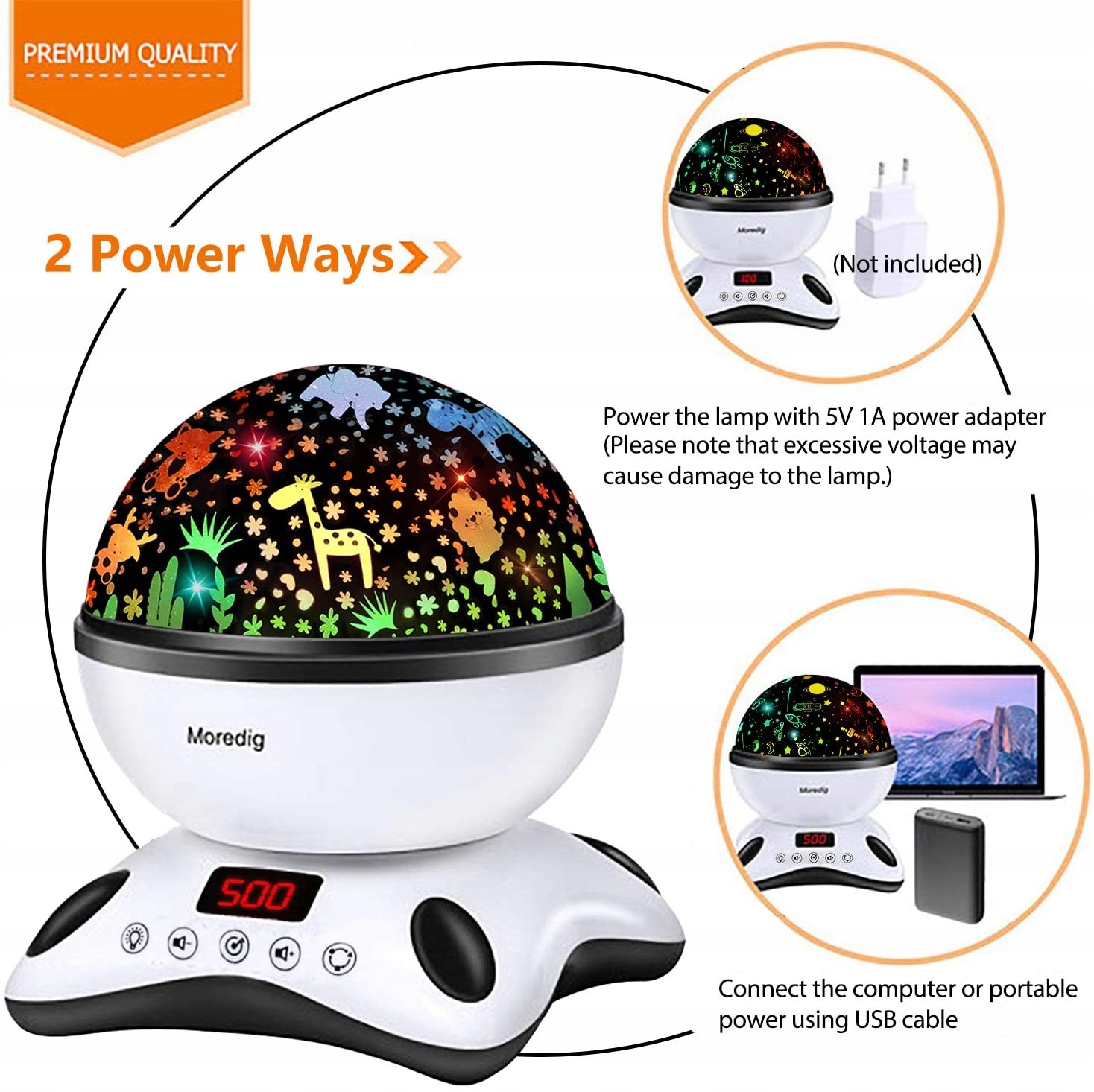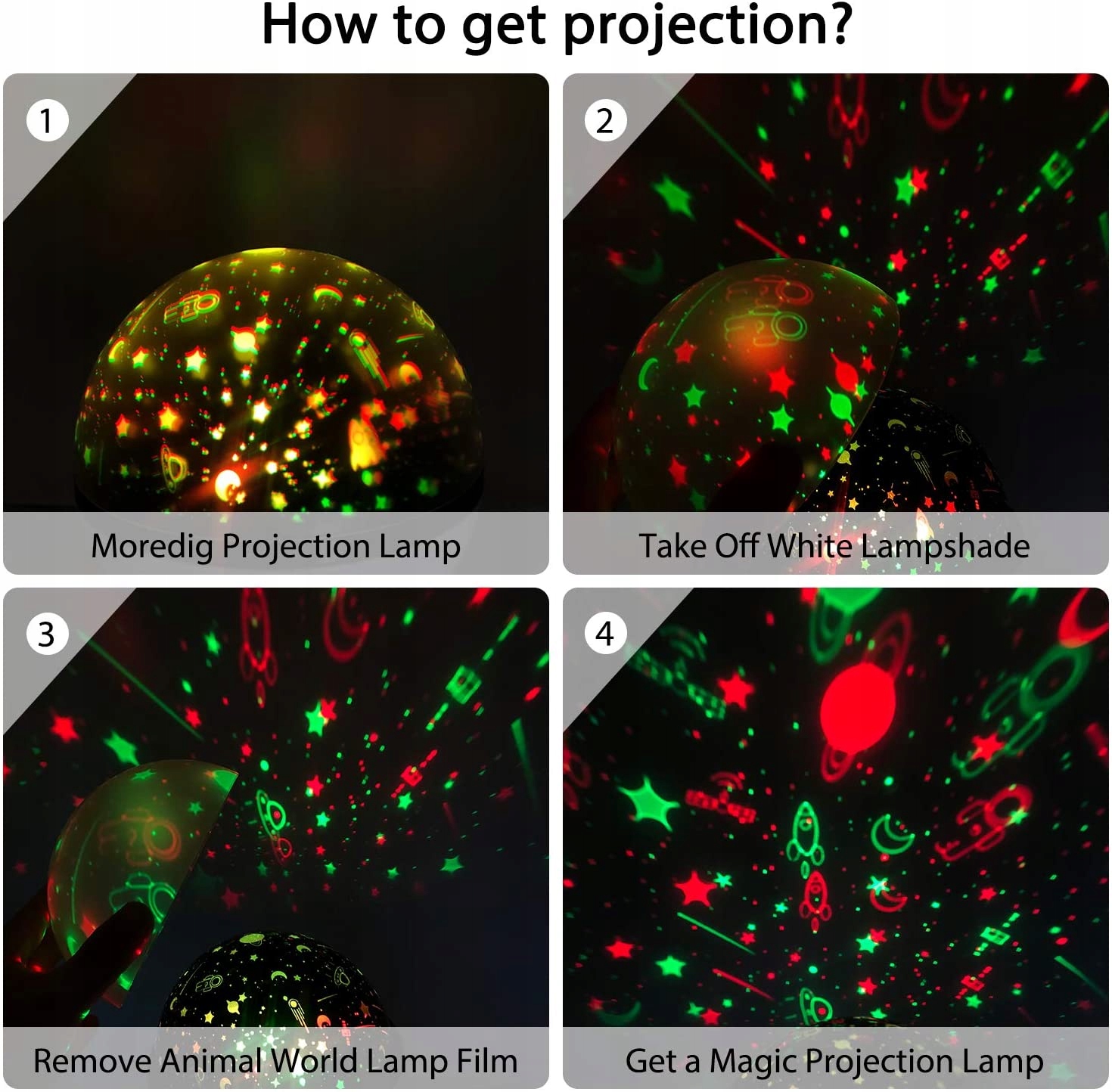 Moredig Night Projector for Babys and Children — це інноваційний пристрій, який знайомить дітей із спокійним і приємним світом мрій. Завдяки барвистим і динамічним світловим проекціям проектор створює чарівну атмосферу в кімнаті малюка, допомагаючи йому заснути і розслабитися. Пристрій легкий, портативний і простий у використанні, тому ви можете розмістити його будь-де в кімнаті.