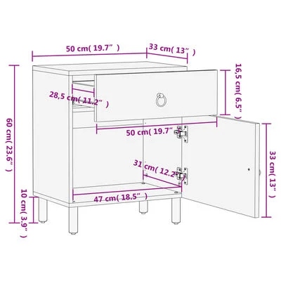 Нічний шафа 50х33x60 см, виготовлений із суцільного дерева манго