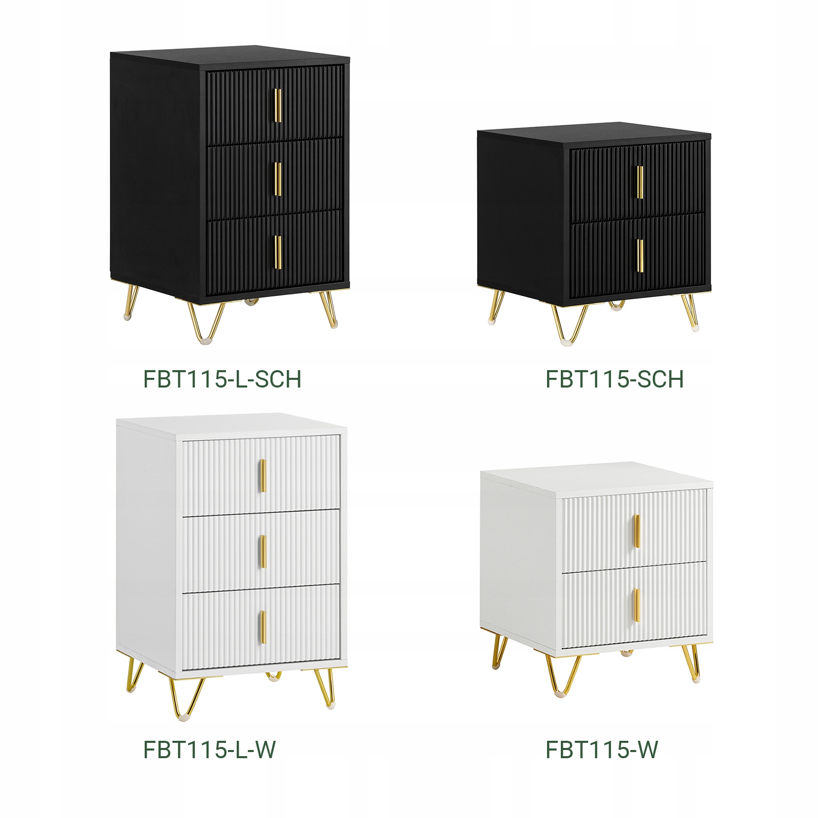 Завдяки свердловині дизайну, цей стильний нічний стіл не буде підтримуватися, що забезпечує його довговічність та міцність. Розміри нічного шафи економить простір, а також проживають у вузьких куточках і нішах. Він також ідеально підходить як бічна шафа у вітальні або як телефонна шафа в залі. FBT115-L-W (висотою 63 см)