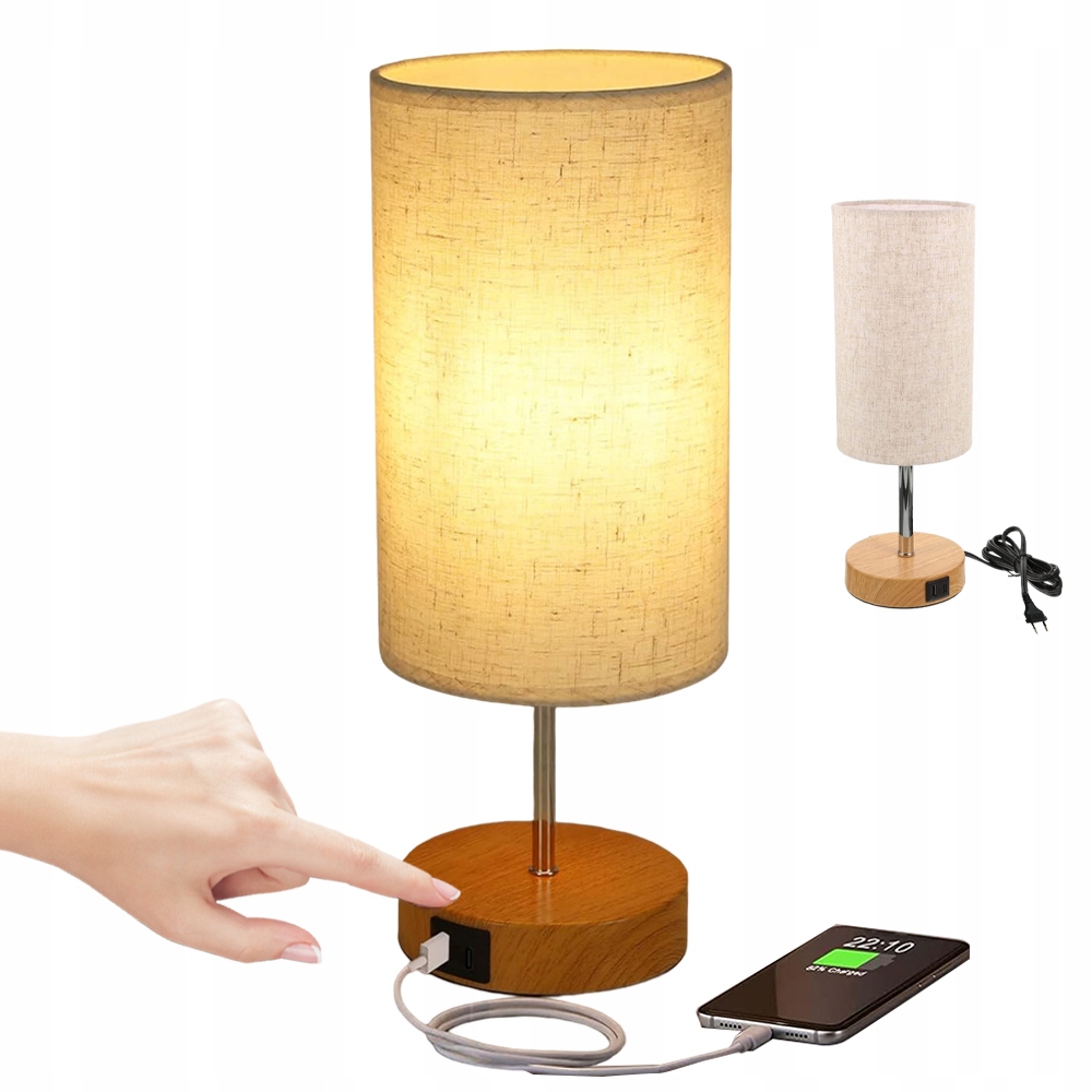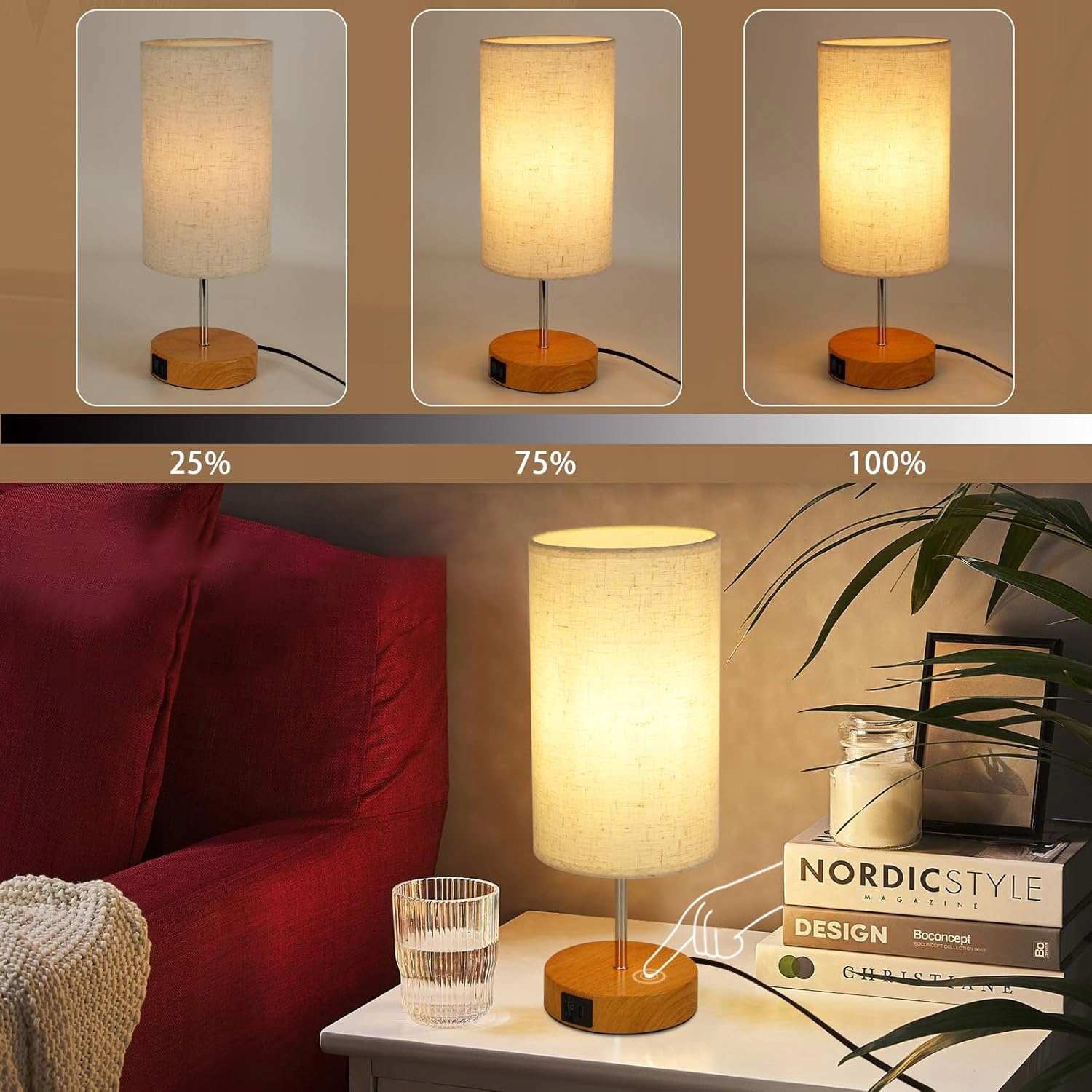 Нічна лампа з функцією невеликої настільної лампи USB A+C Basic Linen Base для спальні, Салон Встановити)