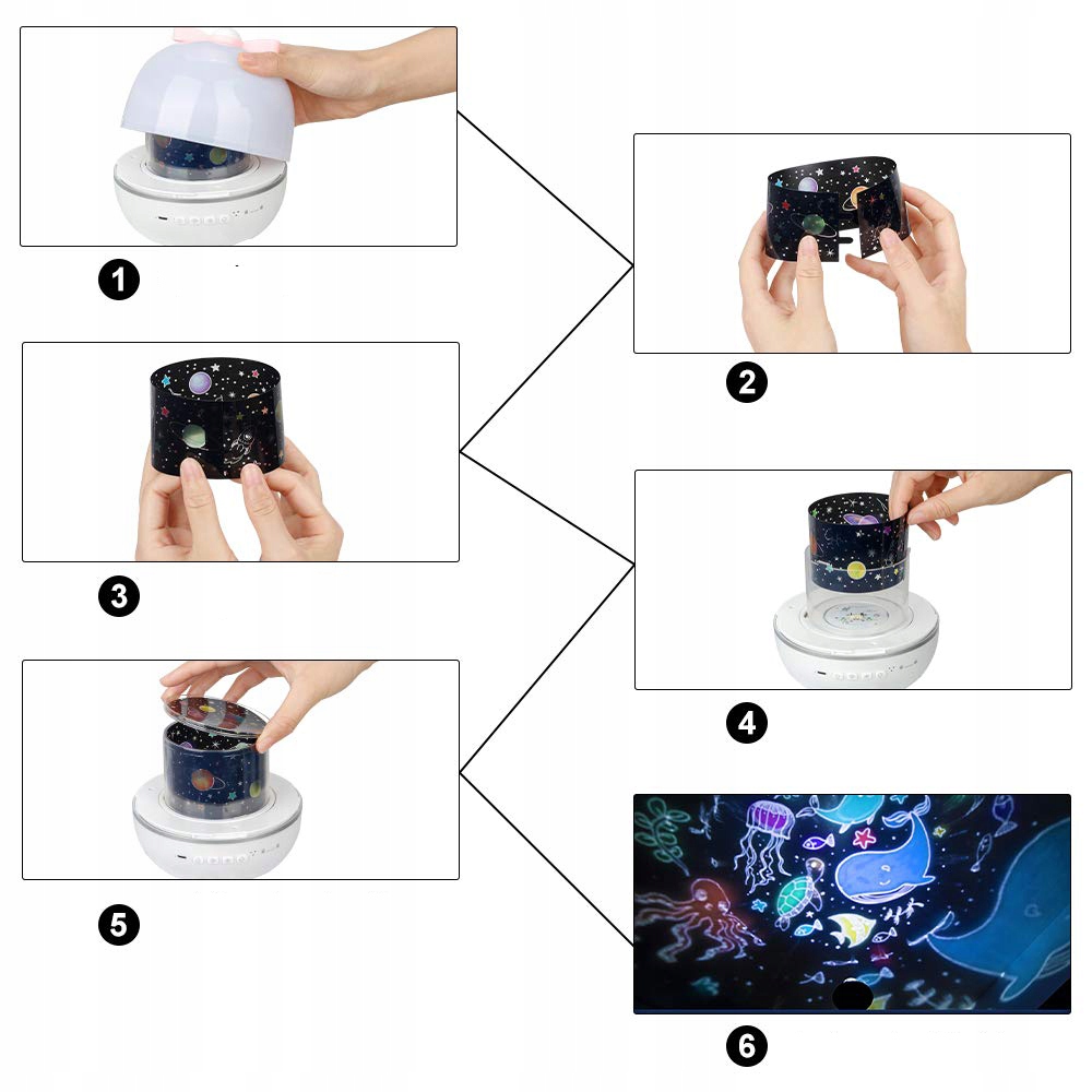 ✅6 додаткових режимів сцени: дитячий нічний проектор забезпечує різноманітні сцени, такі як вечірка з нагоди дня народження, дитинча троянського коня, Санта-Клаус, парк морських динозаврів, ракета-літаюча тарілка та парк тварин. Ви можете вибрати різні проекційні плівки для різних сцен. Допоможіть дітям стимулювати цікавість, уяву та творчі здібності.
