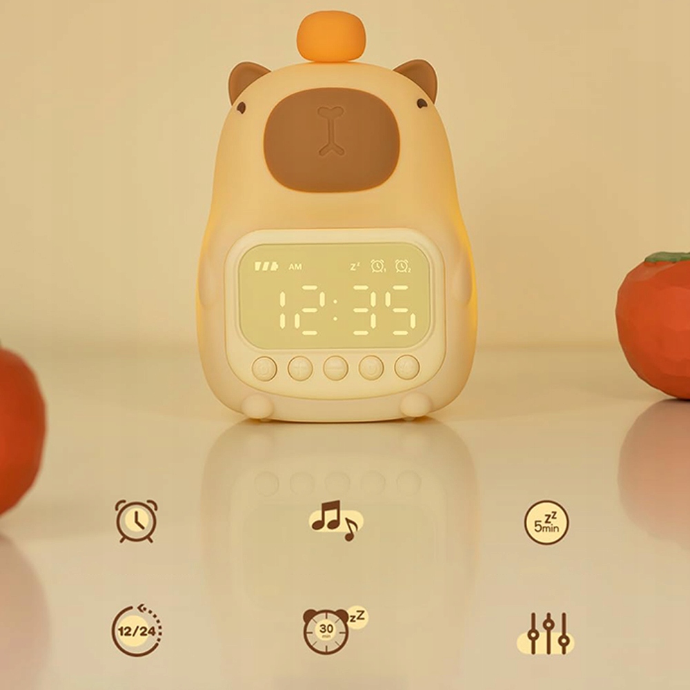 НІЧНИК ДИТЯЧИЙ CAPYBARA БУДИЛЬНИК LED ГОДИННИК СИЛІКОНОВИЙ М'ЯКИЙ USB
