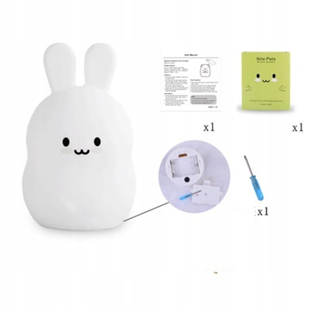 Лампа-кролик випромінює м’яке, приємне та безпечне для очей світло. Ідеально підходить як додаткове джерело світла під час гри або за столом під час виконання домашніх завдань. Лампа стане в нагоді в довгі осінні та зимові вечори. Наповніть кімнату вашої дитини фарбами! Корпус пристрою виготовлений з м'якого силікону, має всі необхідні сертифікати.