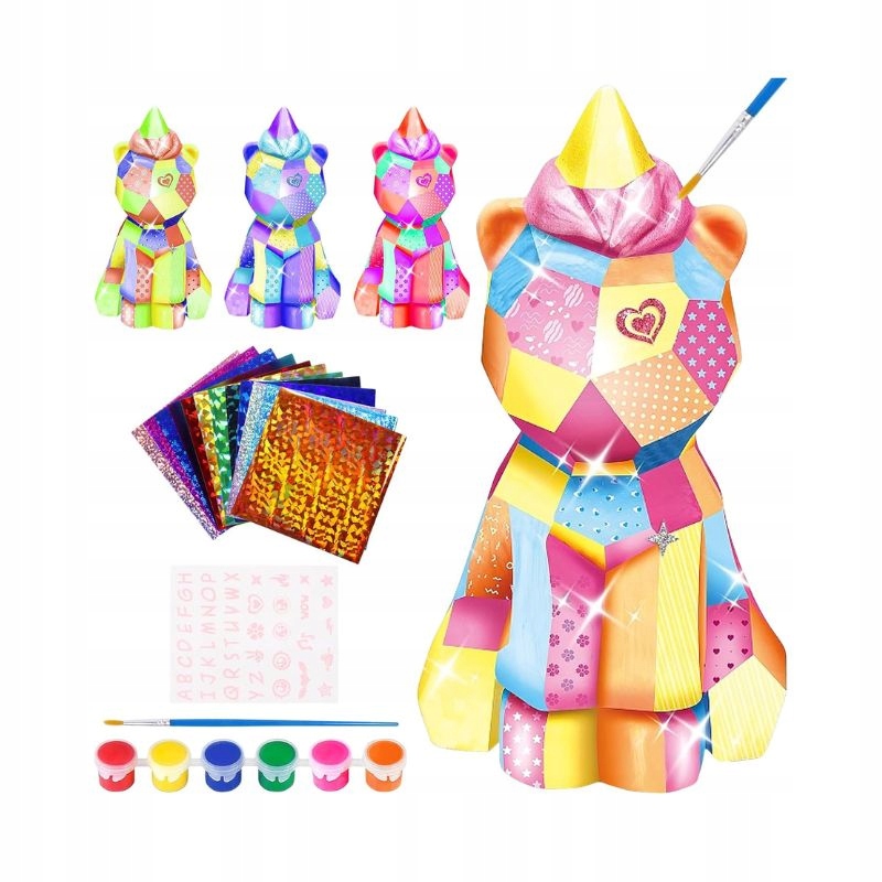 - кількість елементів: єдиноріг х 1 шт., набір водних фарб х 1 шт., пензель х 1 ст., наклейки х 1 аркуш, глянцева фольга х 12 аркушів