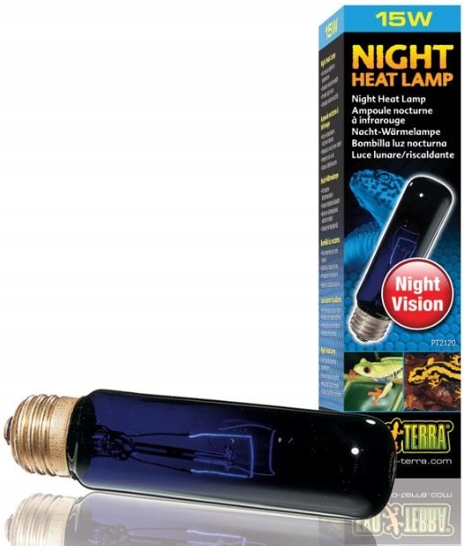 Вона забезпечує належні умови для нічного життя та температури, подібні до тих, що переважають вночі в тропічному кліматі (менша потужність лампочки EXO TERRA Night не перешкоджає природним перепадам температури вночі). Прекрасно стимулює репродуктивну поведінку рептилій.