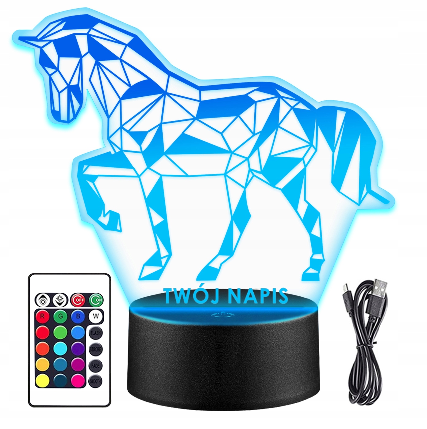 НІЧНИК КІНЯ 3D СВІТЛОДІОДІВ КОЛЬОРІВ + ПУЛЬТ ДИСТАНЦІЙНОГО КЕРУВАННЯ з вашим власним бажанням