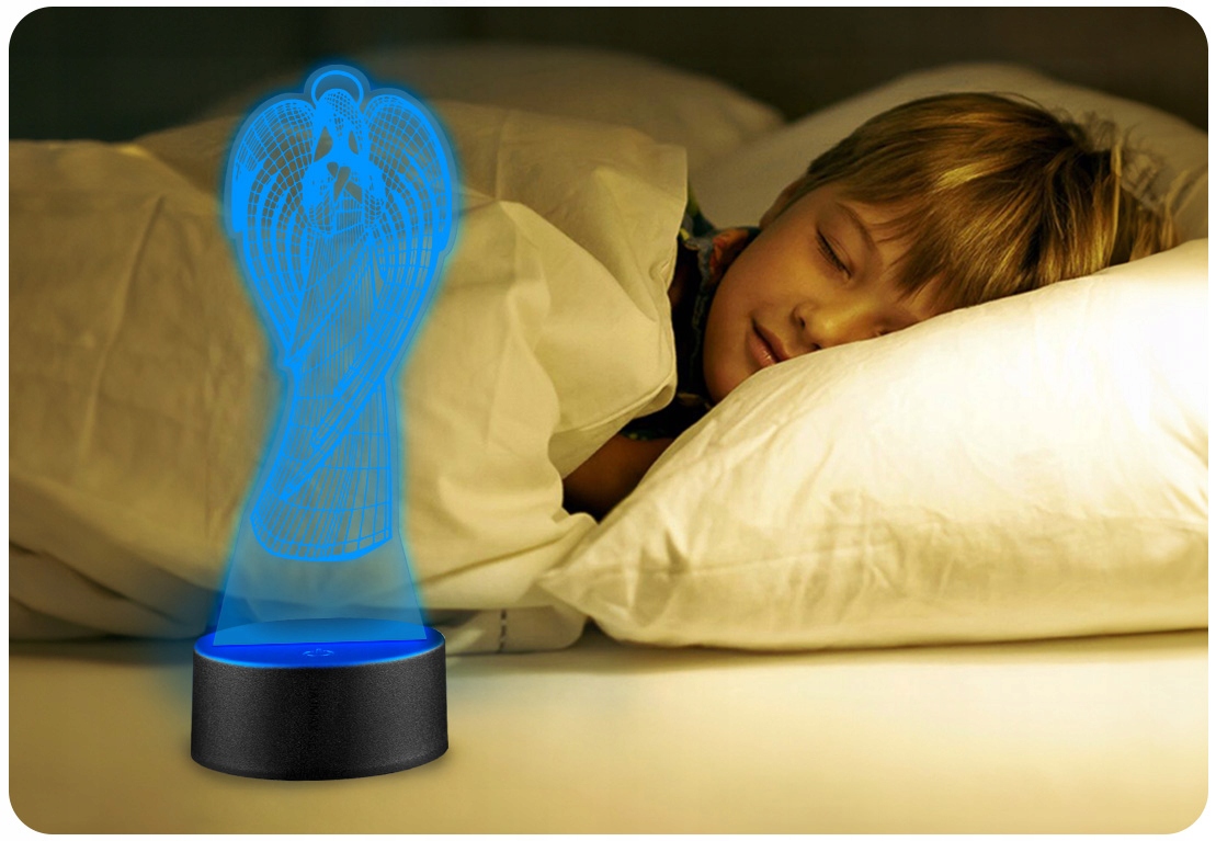 НІЧНИК LED АНГЕЛ ОХОРОНИТЕЛЬ 3D АНГЕЛ + ПУЛЬТ Подарункова статуетка на ДЕНЬ НАРОДЖЕННЯ