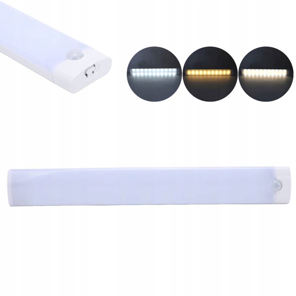 Світлодіодний гардеробний світильник з датчиком руху, 3 кольори, регулювання яскравості, живлення від акумулятора, зарядка через USB, зарядка під кухонною шафою, 30 см