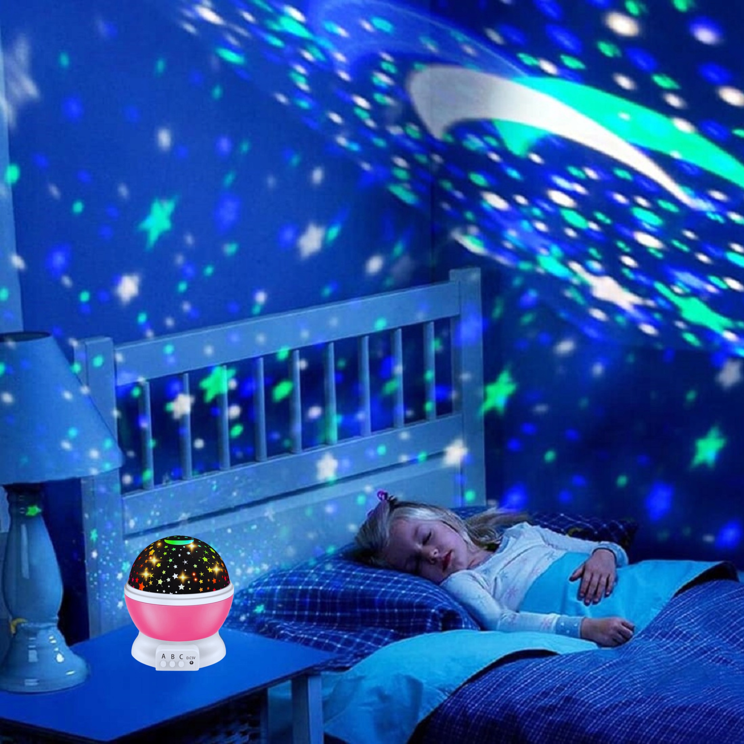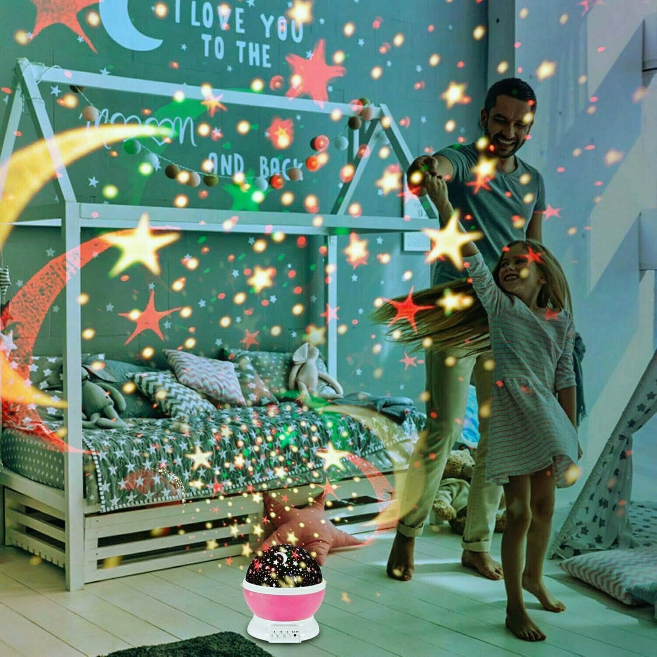 Ми представляємо інноваційний проектор для дитячої кімнати, , який виступає як нічна лампа, проектор зірок та прикраси для випадкових подій.