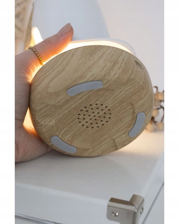 Бездротова колонка Bluetooth дозволяє відтворювати казки, колискові та улюблену музику. Панель керування та світлодіодна технологія, яка використовується в лампі, роблять її використання простою та абсолютно безпечною. Вбудована літієва батарея на 1200 мАг з портом USB, коли повністю заряджена, світить всю ніч.