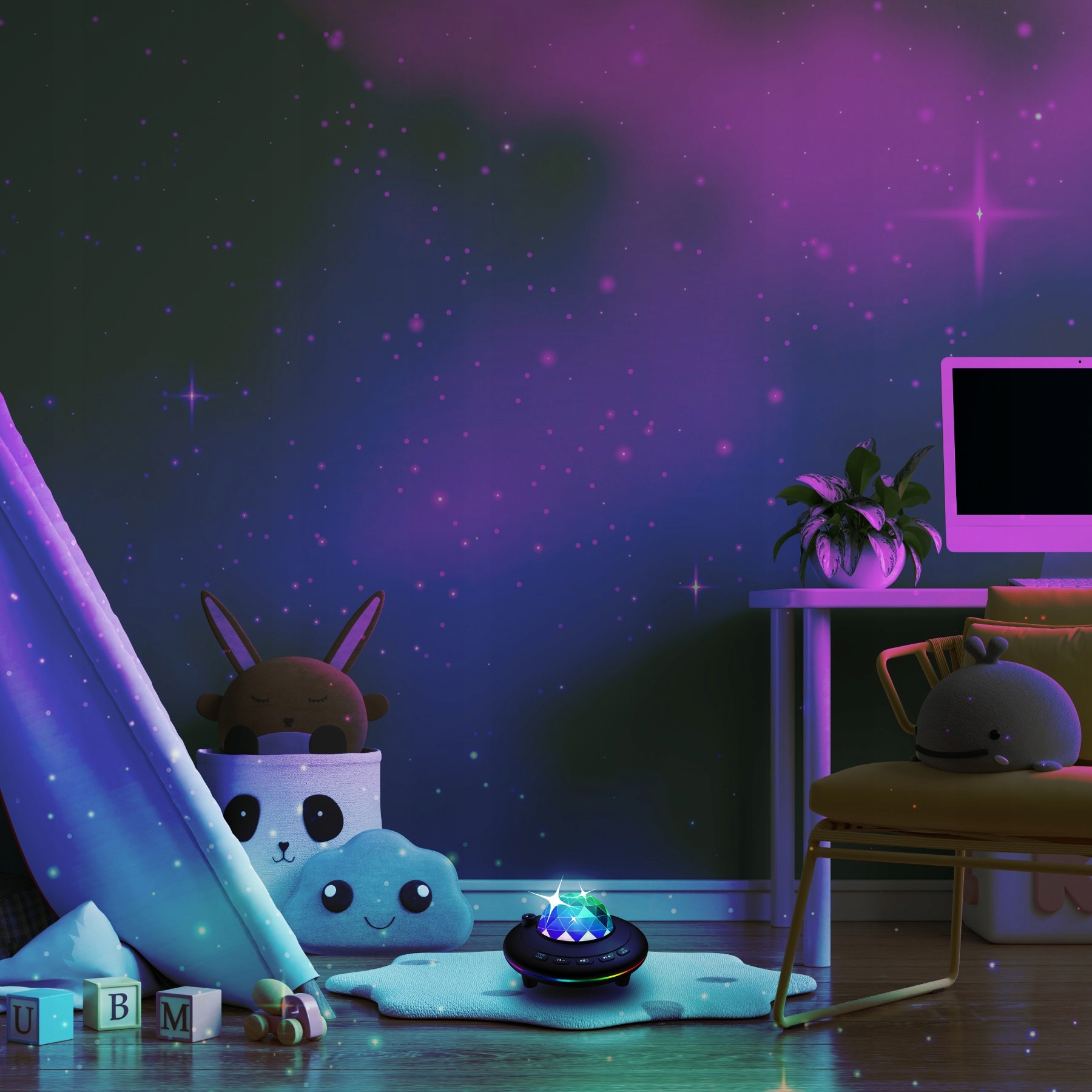 Якщо ваша дитина захоплюється космосом і зірками, наш проектор змусить її відчути, ніби вона ковзає космічним небом. Вечірні історії перед сном із додаванням космічних зірок, що обертаються на стінах, ще більше стимулюватимуть уяву вашої дитини.