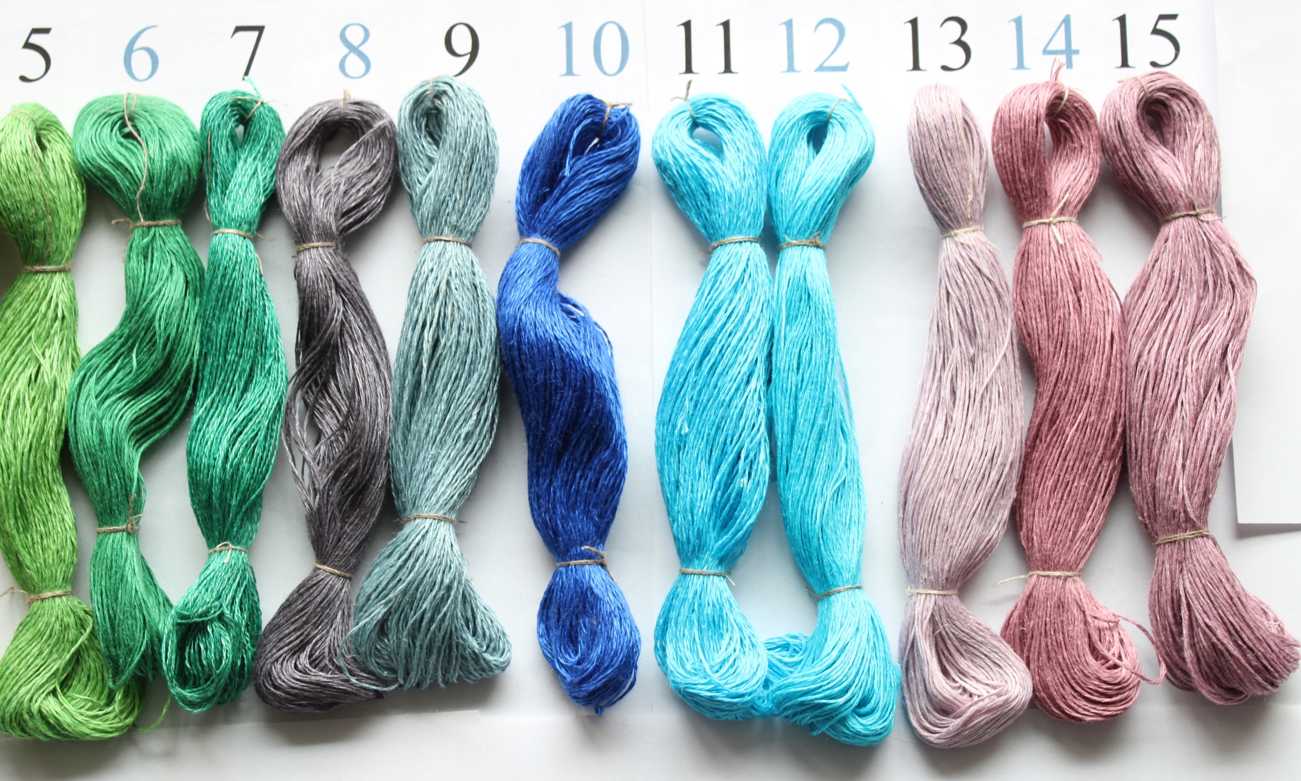 Нитки сфотографовані на білому аркуші паперу. Враховуйте, що у моніторів може дещо змінюватися відтінок кольору ниток.