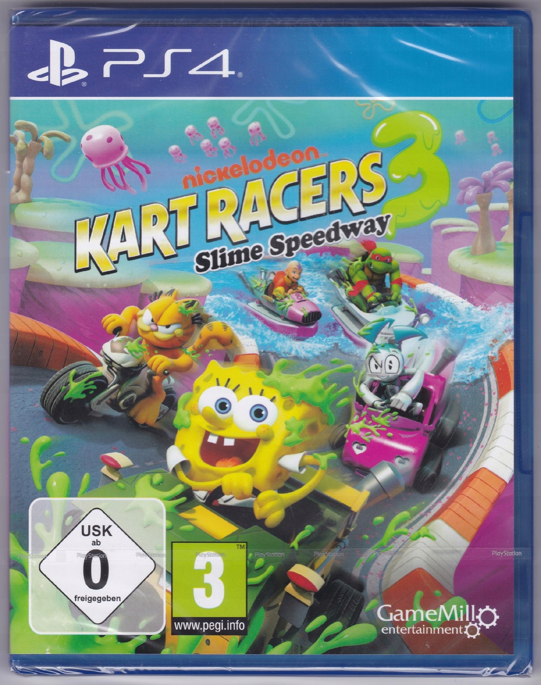 третя частина серії Arcade Racing Games, в яких ми граємо персонажів із серії, що транслюються на каналі Nickelodeon і боремося за перемогу на різних маршрутах. У Nickelodeon Racers 3: Slime Speedway ви можете грати наодинці або в Інтернеті. У Nickelodeon Racers 3: Slime Speedway ми граємо у понад 40 символів, відомих з мультфільмів, що транслюються на телеканалі Nickelodeon. Серед них ми знайдемо, серед інших, герої SpongeBob Kaniastoporty та войовничих черепах ніндзя чи героїв із серії "Аватар": "Останній повітряний". Головні герої сидять за кермом Go -Karts і їздять на мотоциклах, щоб боротися за перемогу на 36 різних треках, натхненні місцями їх телевізійних пригод. На звивистих маршрутах він сповнений перешкод, пагорбів та різних ярликів; Крім того, вони сповнені титульного мулу, на якому наші чотири (або два) колеса поводяться як моторні човни.