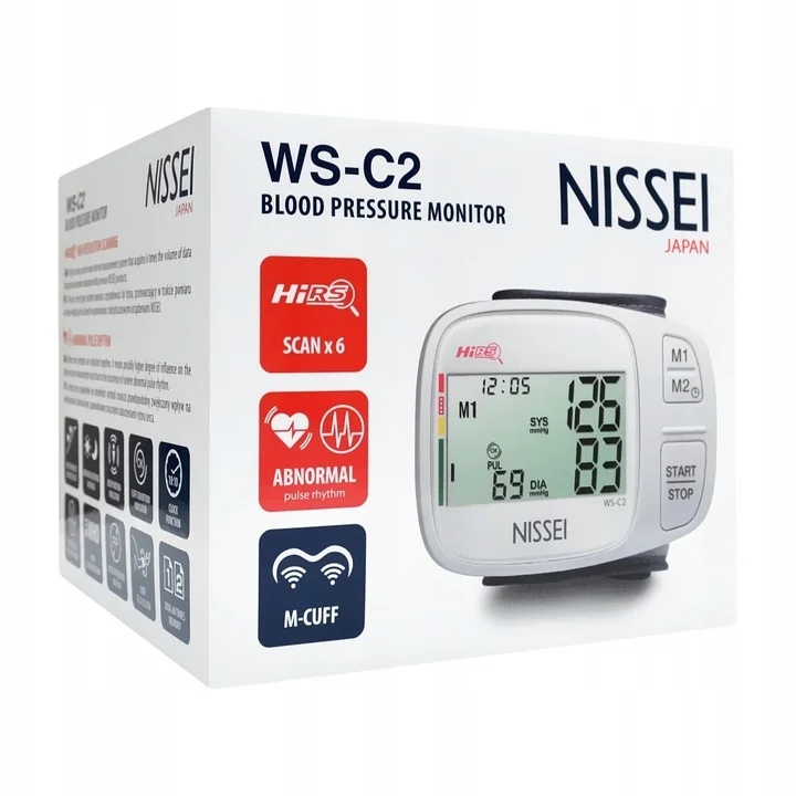 Високоякісний японський автоматичний, монітор тиску на зап'ясті. Він використовується для вимірювання спазму та діастолічного артеріального тиску за допомогою осцилотометричного методу, а також для визначення частоти серцевих скорочень. Рекомендовано для домашнього використання для людей з нестабільним тиском або гіпертонією з рекомендацією медичної консультації.