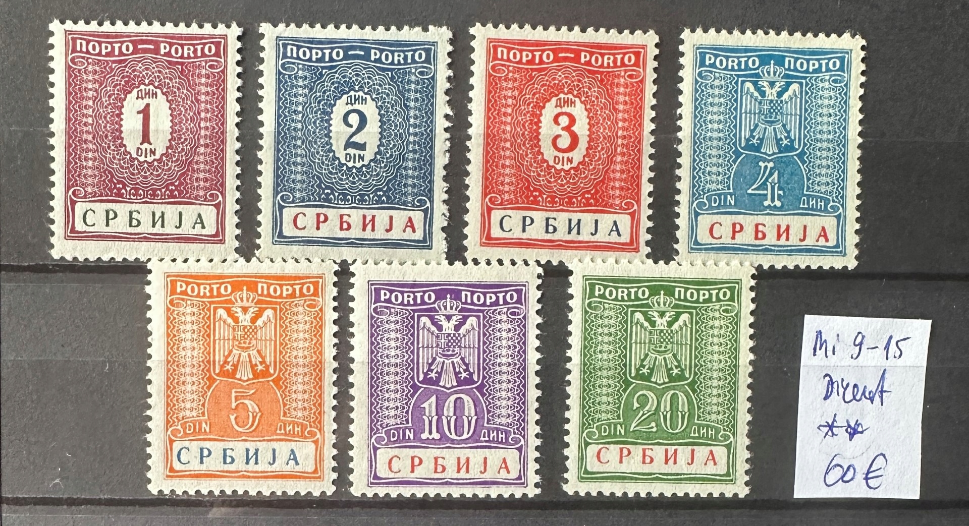 Niemiecka okupacja Serbii Porto Mi9-15 ** MNH 60Euro