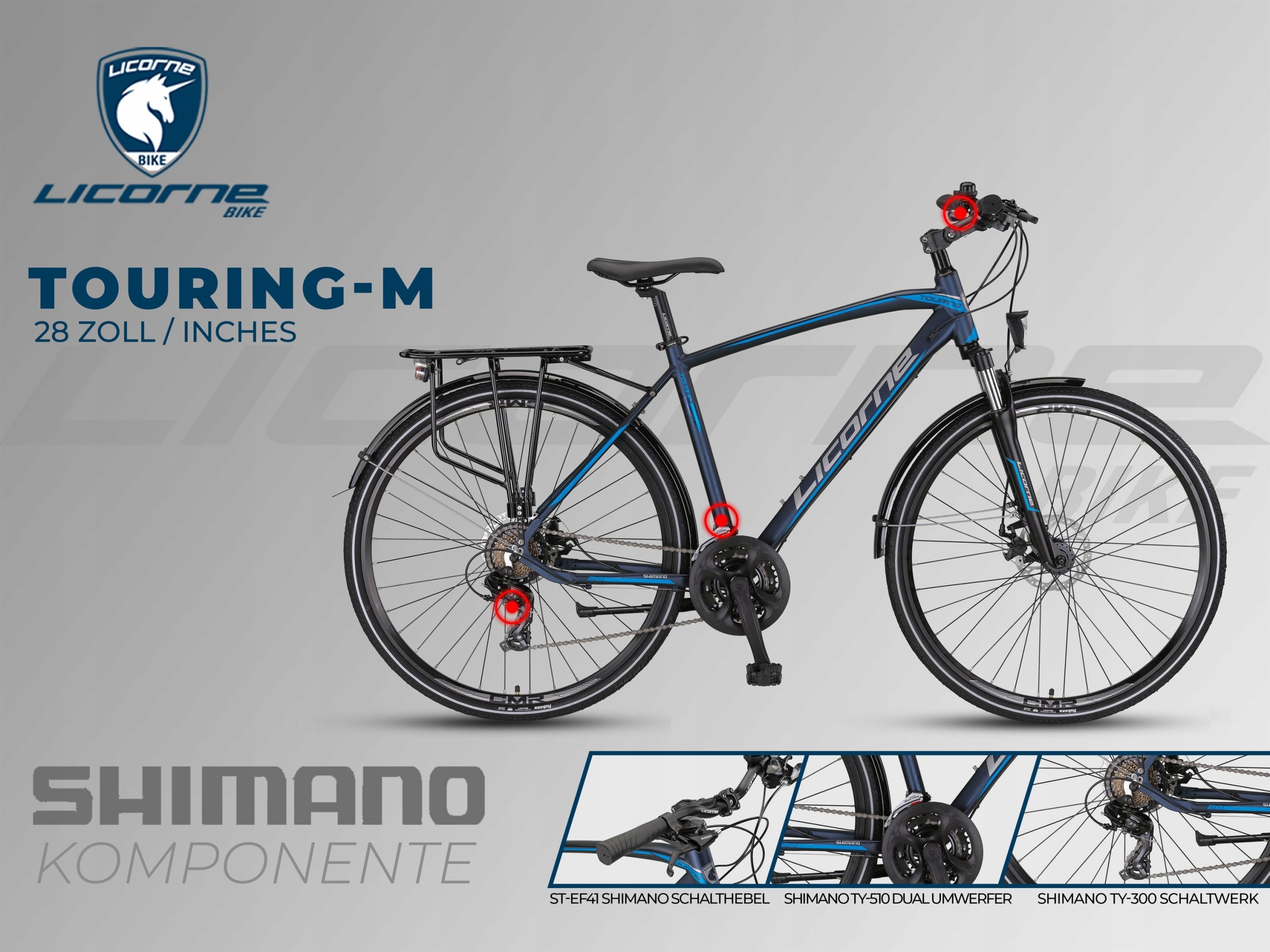 Продається трекінговий велосипед німецької марки LICORNE BIKE, модель TOURING з 21 передачами Shimano Tourney, освітленням, регульованою амортизаційною вилкою, бризковики. Велосипед ідеально підходить як для щоденного використання, так і для тривалих поїздок. 21-швидкісний перемикач забезпечує комфорт їзди в будь-яких умовах.