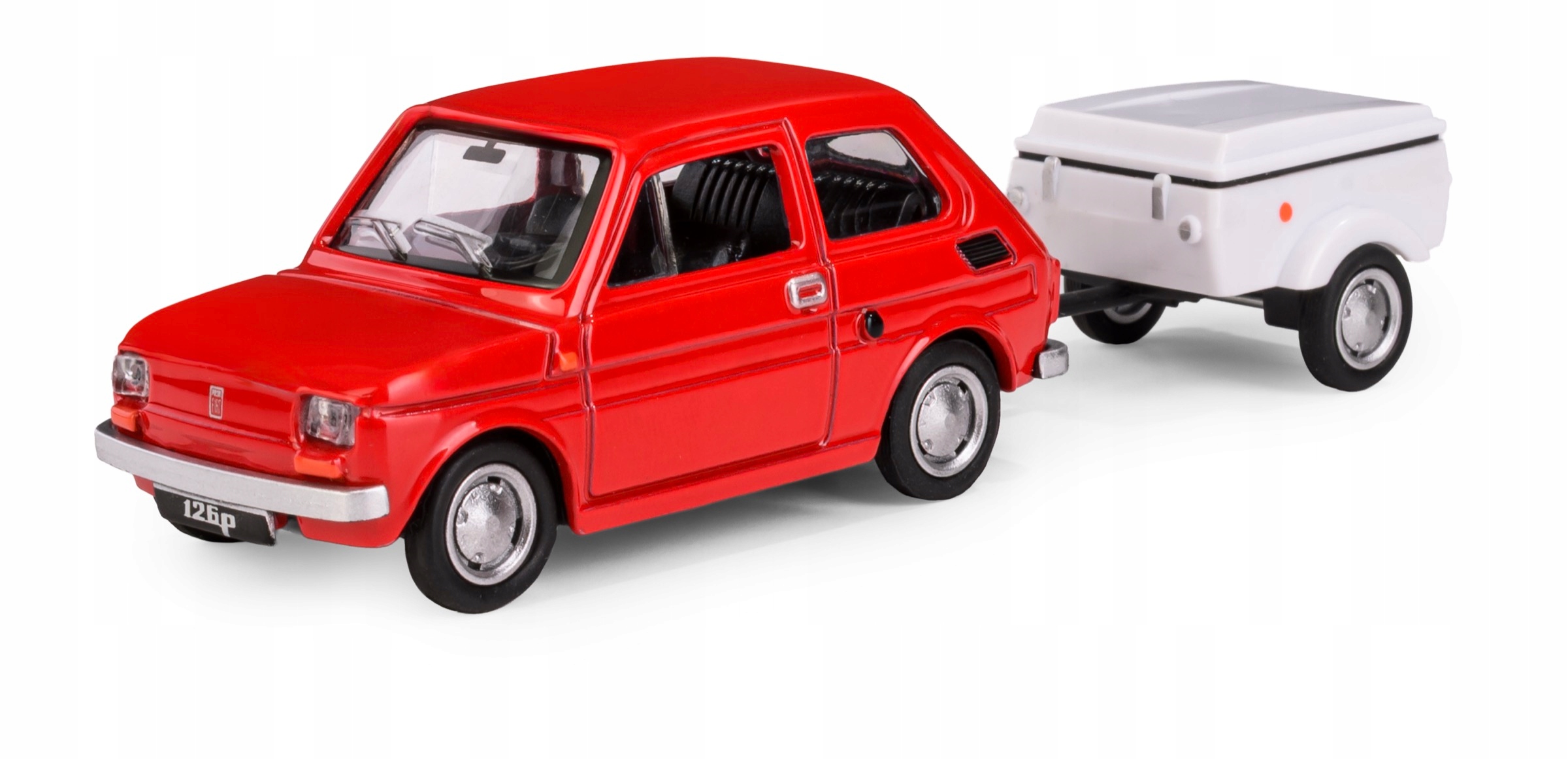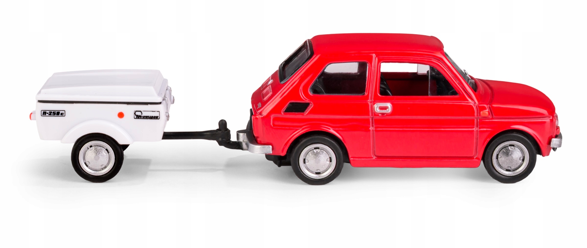 Відчуйте атмосферу старих експедицій та сімейних свят! Культовий Fiat 126p у поєднанні з більшим комфортабельним причепом Niewiadów N250C – набір, який пробудить спогади та порадує кожного колекціонера.