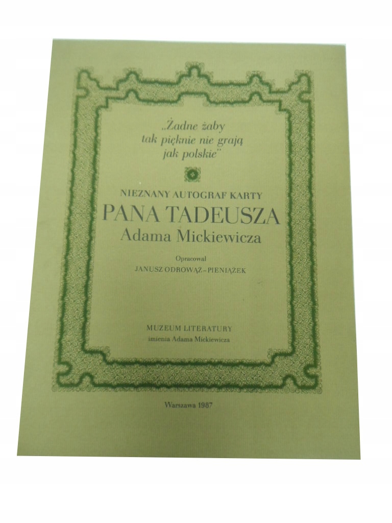 Оплачивая «NIEZNANY AUTOGRAF KARTY PANA TADEUSZA podpis» данное изделие из «Бібліофіл і стародруки» вы можете быть уверены, что после оформления заказа, доставки в Украину, вы получите именно то, что заказывали, в оговоренные сроки и европейского качества.