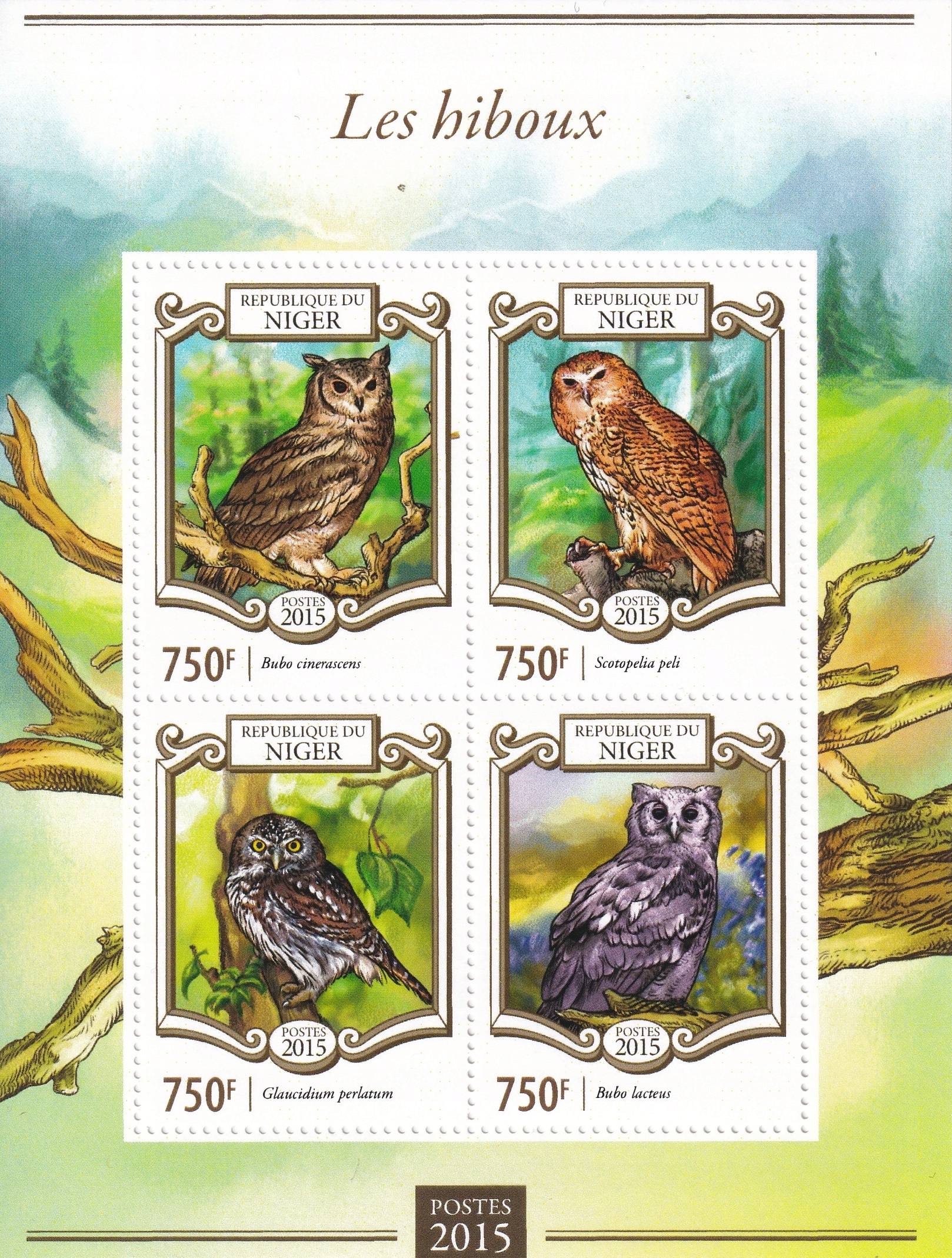 Нігер 2015 ** ціна 5,90 злотих, категорія €7 (2) - птахи, сови, лист