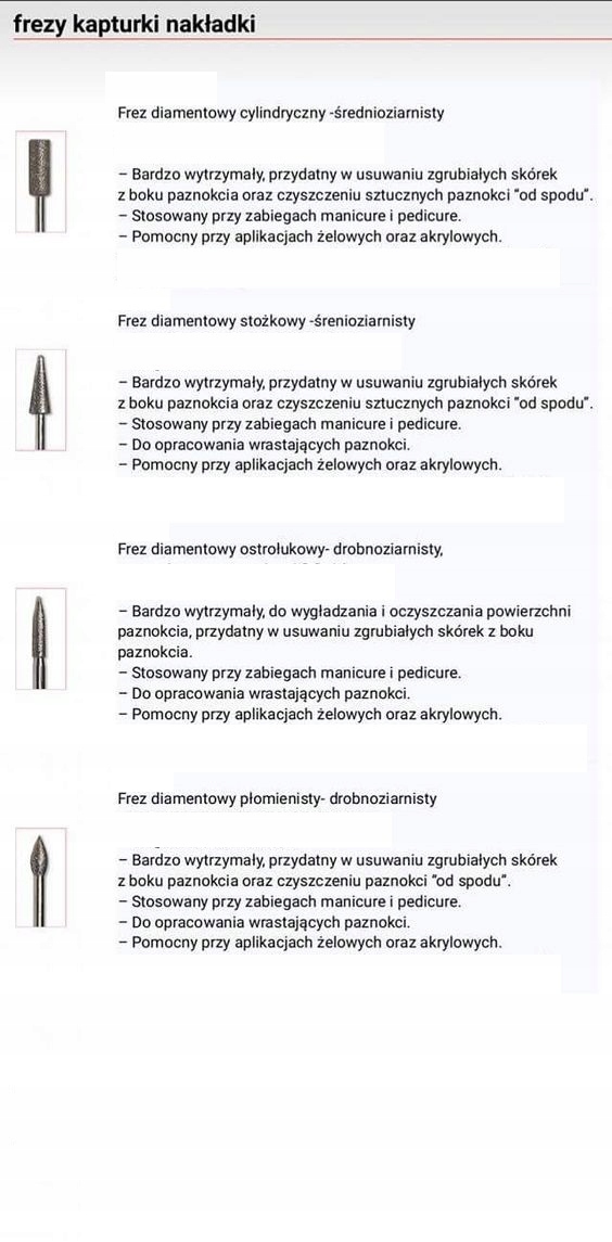 різаки для фрезерних машин- виготовлені з твердого матеріалу, допомагають ефективно та безпечно виконувати процедуру. Накладки є одноразовими, завдяки якому ми отримуємо найвищу гігієну роботи. Абразивний вбудований на ламінований папір, наповнений піщаними зернами.