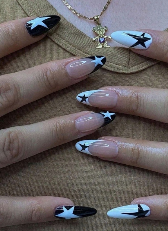 Нігті пресувати на наконечниках для нігтів 24 зірки зірок французький