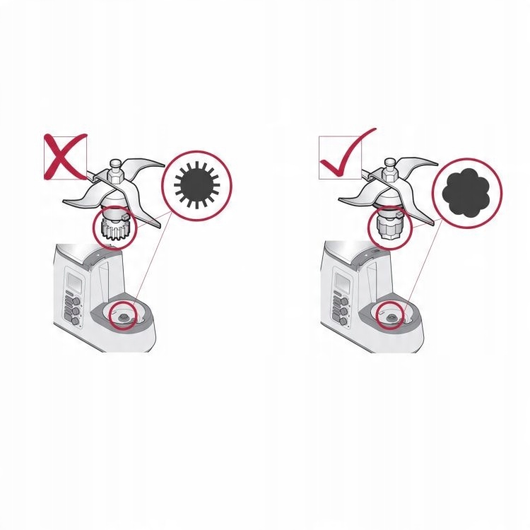 Дуже гострий міксерний ніж подрібнює, подрібнює та змішує всі інгредієнти, які надходять у миску. Секрет його ефективності полягає в розташуванні лез в різних площинах, що гарантує оптимальні результати змішування та подрібнення. Крім того, міксерний ніж пристосований для роботи як правою, так і лівою рукою. Міксерний ніж виготовлено з нержавіючої сталі, його можна мити в посудомийній машині та легко встановити чи замінити.