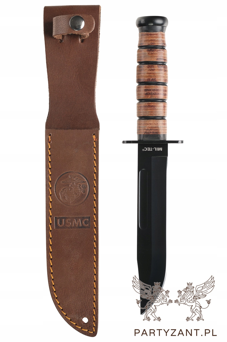 піхви повністю виготовлені з товстої, просоченої волової шкіри. Графічний логотип і напис USMC вибиті гарячим тисненням на піхвах.