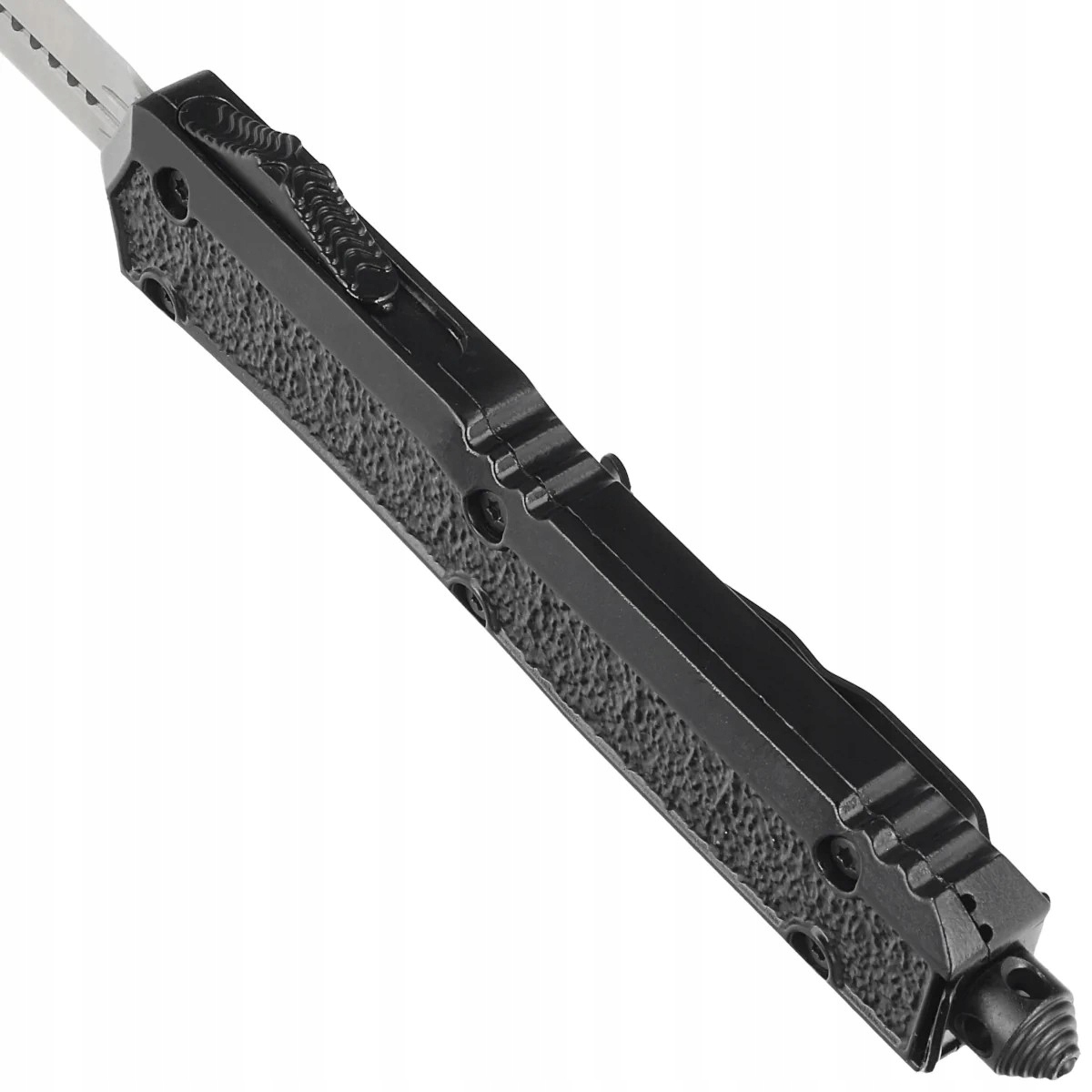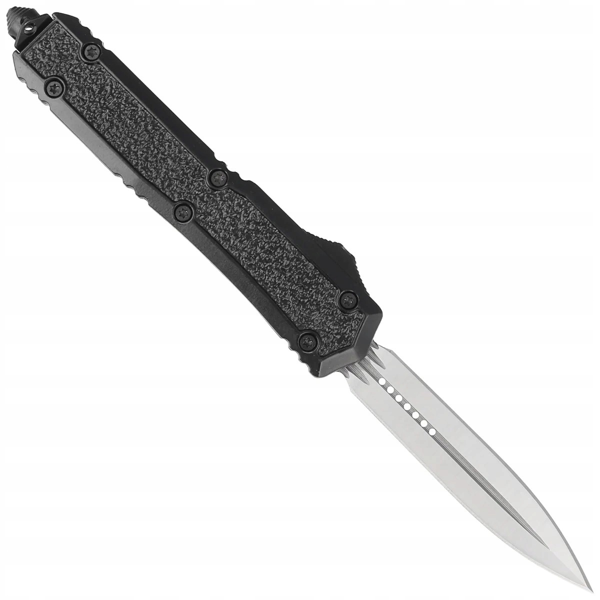 Автоматичний пружинний ніж Dulotec OTF Black Aluminium, кинджал Satin