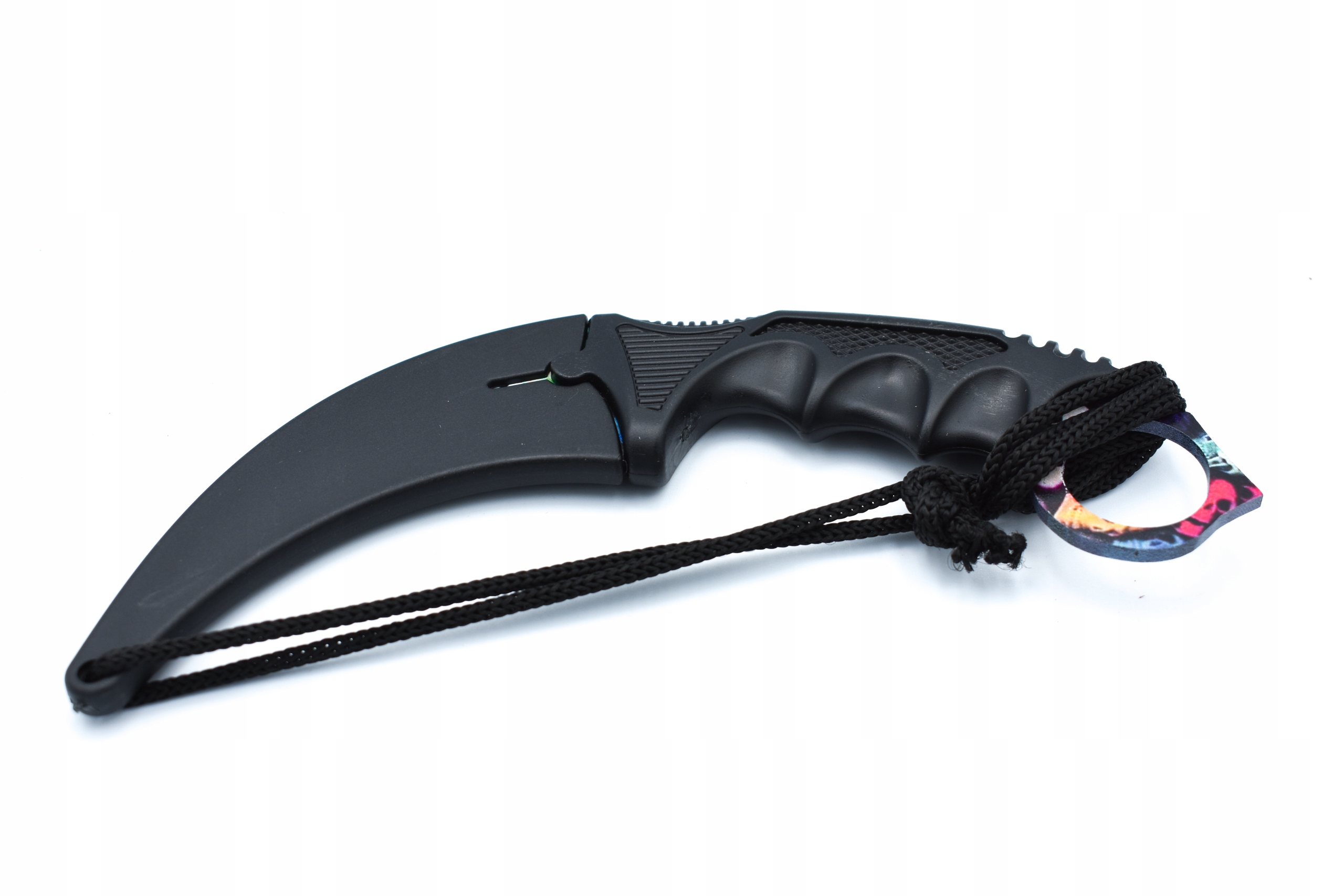 Карамбітовий ніж походить із гриCS:GO, характеризується вигнутим лезом і ручка з отвором на кінці.