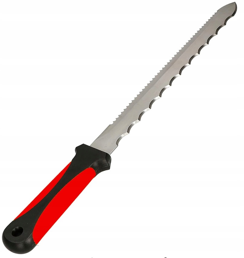 Даний ніж підходить для різання будь-яких видів мінеральної вати та полістиролу. Лезо двостороннє, виготовлене з міцної нержавіючої сталі, що робить його надзвичайно міцним. Ручка профільована з пластику, зручна і ударостійка.