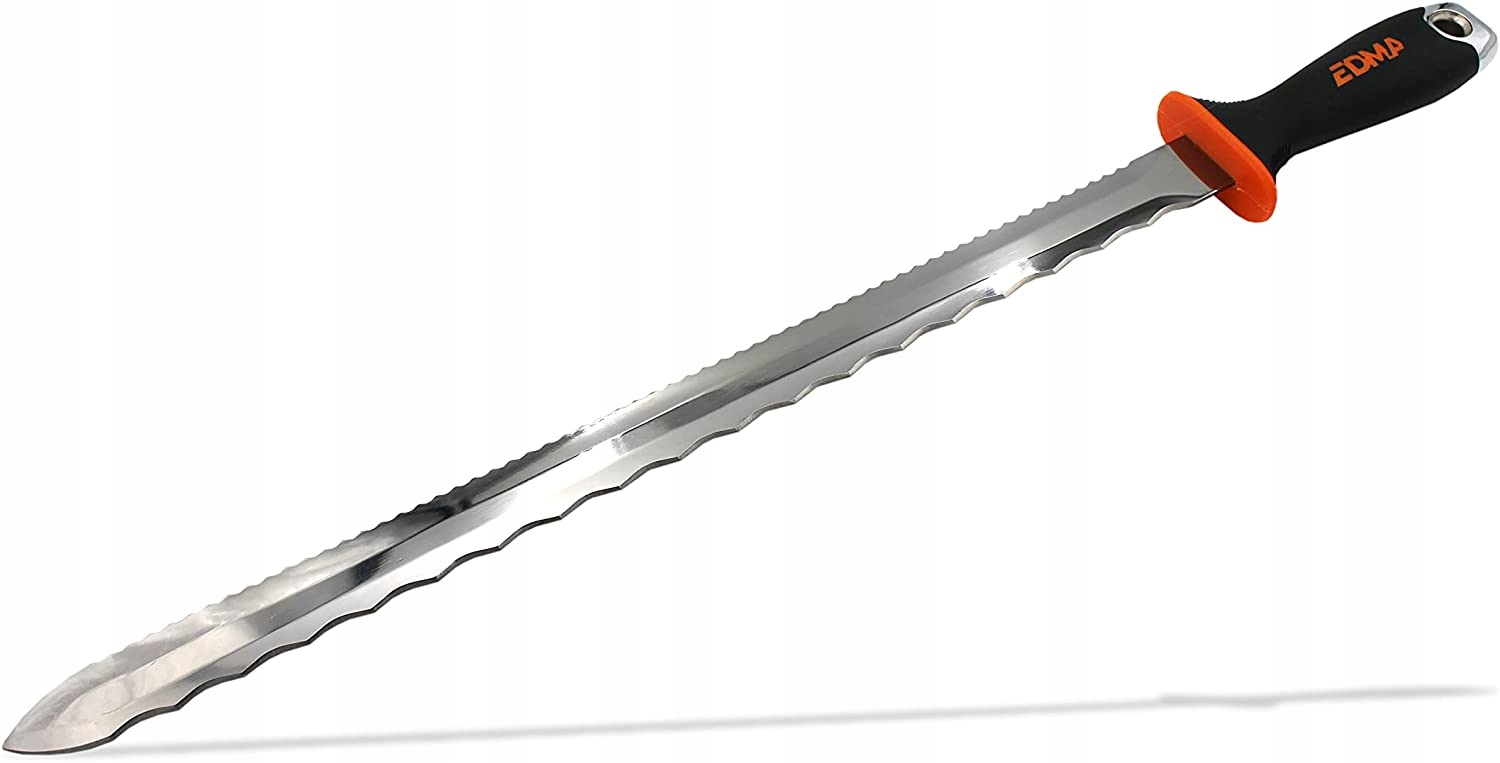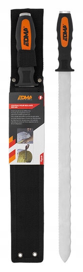 - Ніж EDMA для мінеральної вати та полістиролу, виготовлений з високоякісної сталі з двостороннім зубчастим лезом. Одне лезо використовується для різання мінеральної вати, а інше – для різання полістиролу.