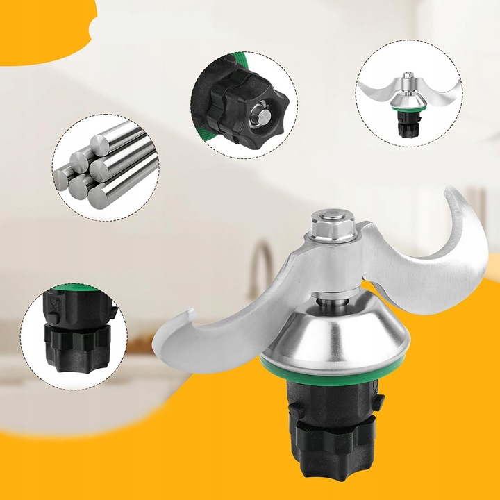 ✔️ Леза з нержавіючої сталі:Ніж виготовлено з високоякісної харчової нержавіючої сталі, яка є довговічною. Ці леза не лише стійкі до подряпин та іржі, але й екологічні. Оптимальне та рівномірне подрібнення чи змішування інгредієнтів