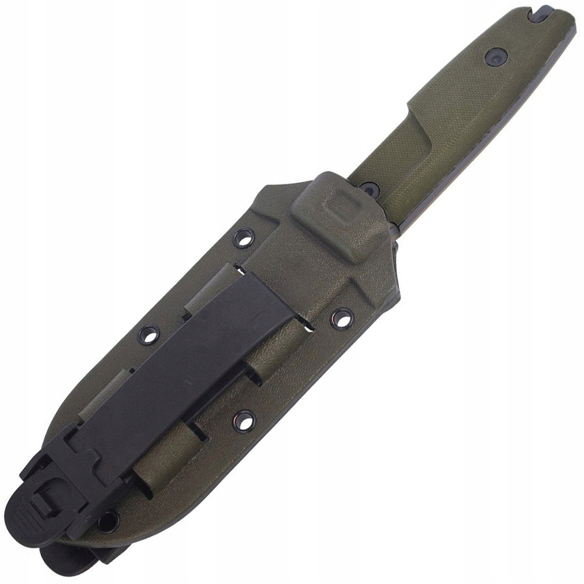 Зелені піхви kydex сумісні з системою MOLLE. Це дозволяє носити ніж у вертикальному положенні на поясі, на жилеті або інших елементах спорядження.