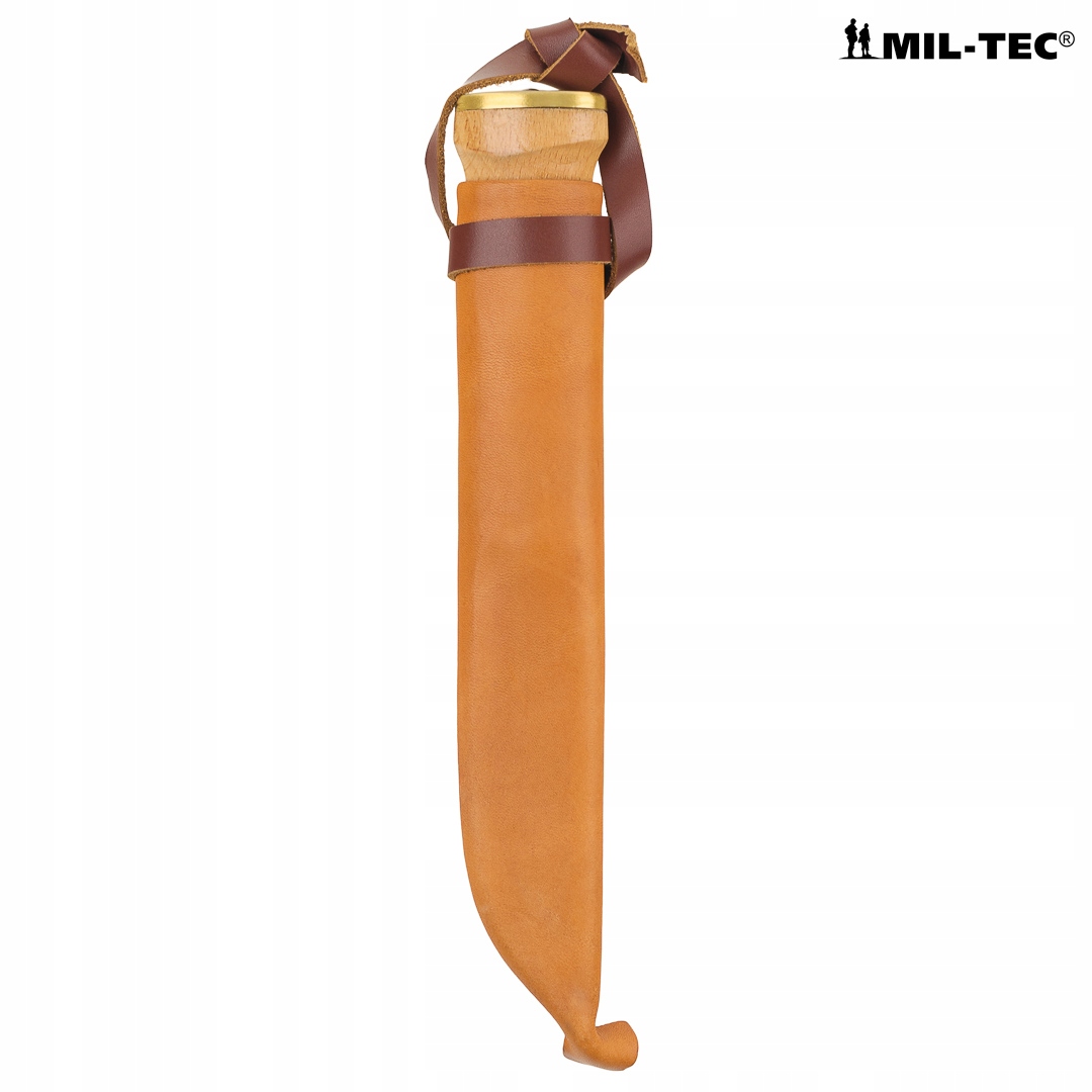 Фінський мисливський ніж із швидкорізальної вуглецевої сталі. Традиційний ніж Leuku (Samikniv), який використовували скандинавські саами, схожий на компактні ножі Puukko, але набагато більший. Крім класичного дизайну, фінські ножі мають дуже хороші корисні властивості, тому ними охоче користуються досі. Високоякісний продукт німецького бренду Mil-Tec.