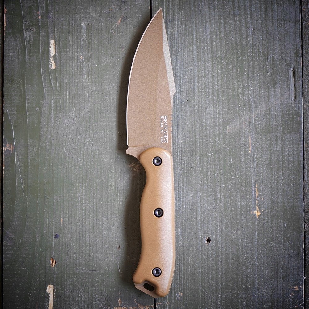 KA-BAR BK18 Becker Harpoon — ніж, виготовлений у США зі сталі 1095 Cro-Van, оснащений коричневим покриттям Ultramid і піхвами Celcon.