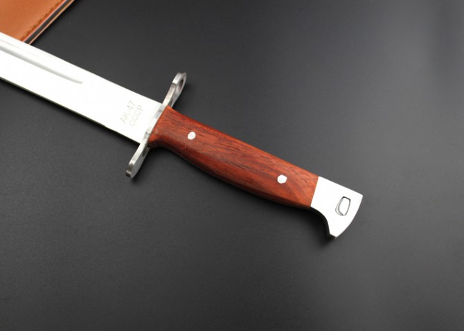 Одна з найдовших моделей цього знаменитого багнета - вона має Конструкція full-tang, виготовлена з одного шматка сталі № 420. Дерев'яна вагонка. На кінці рукояті є механізм, що дозволяє прикріпити до зброї багнет. У комплект входить чохол, який можна носити на поясі.