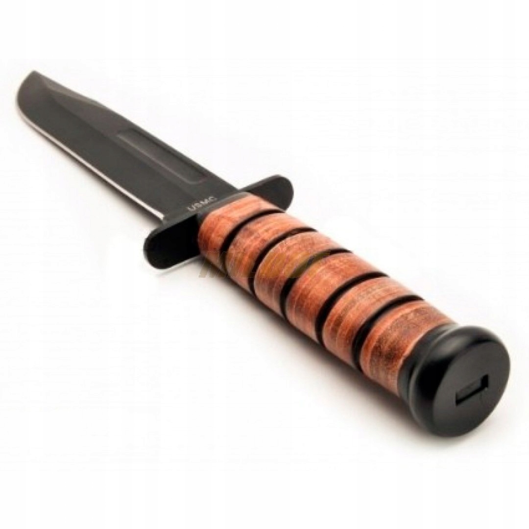 Ніж створено на основі бойового ножа USMC мод. 1942 р. Має шкіряну ручку та шкіряні піхви. Він ідеально лежить у руці та справляє приголомшливе враження. Блокатори на рукоятці захищають руку від зісковзування по лезу. Чорна поверхня леза зменшує відблиски світла в сталі та додає ножу тактичний характер. У чохлі є місце для ременя і отвір для додаткового кріплення (важливо при носінні ножа на литці). Виготовлений зі сталі, яку легко тримати гострою.