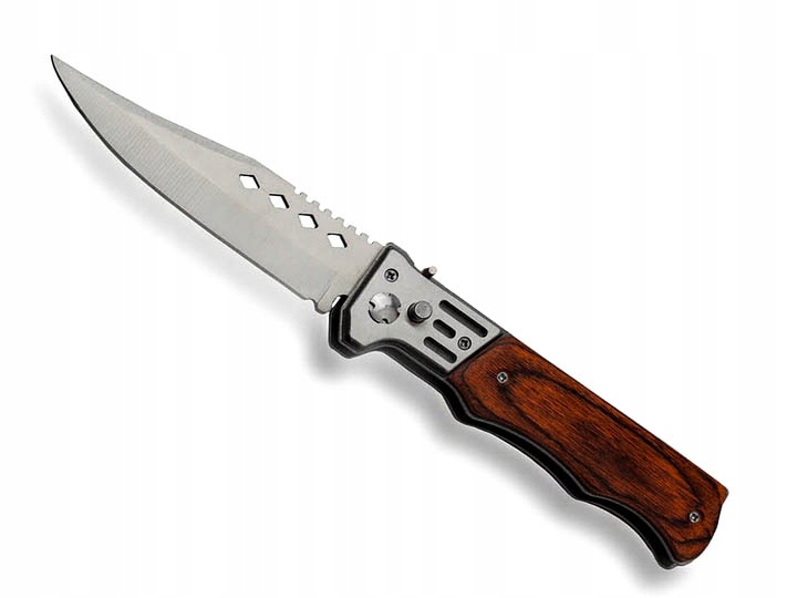 Лезо ножа, механізм і основа ручки виготовлені з високоякісної нержавіючої сталі, що забезпечує довговічність і міцність ножа. Дерев'яна підкладка ручкита її спеціальний профіль забезпечують комфорт і безпекувикористання, гарантуючи надійне захоплення.