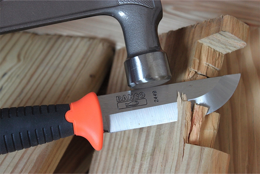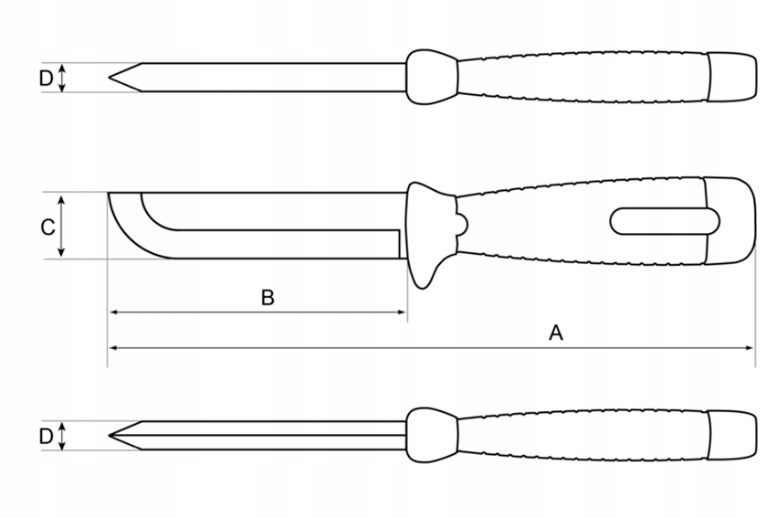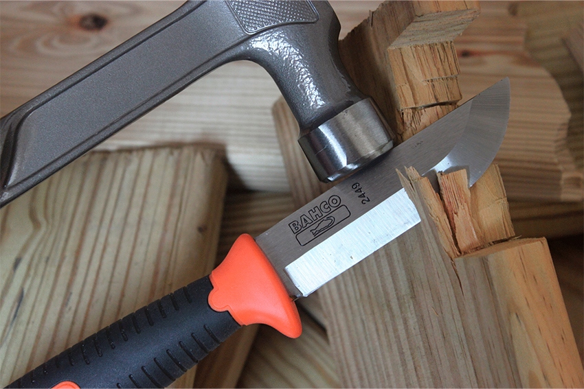 Лезо із загартованої сталі з твердістю 58-61 HRC гарантує виняткову стійкість до ударів і зношування. Задня кромка пристосована для ударів молотком, що значно прискорює різання та відокремлення матеріалів.
