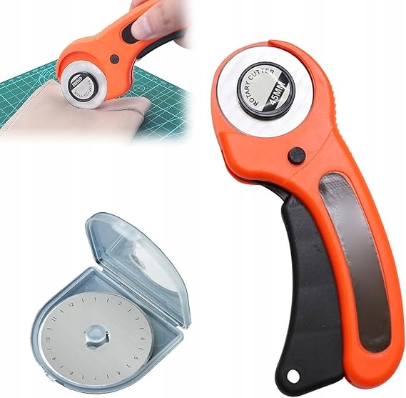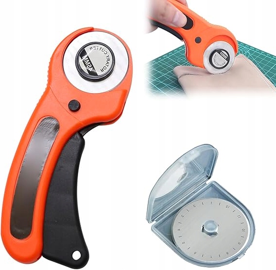 Прецизійний ротаційний різак для шиття та DIY проектів. Включає 1 різак діаметром 45 мм і запасне лезо із зовнішнім діаметром 45 мм і товщиною 0,3 мм. Міцне лезо для тривалого використання. Ергономічна ручка забезпечує зручність роботи. ✂️🛠️