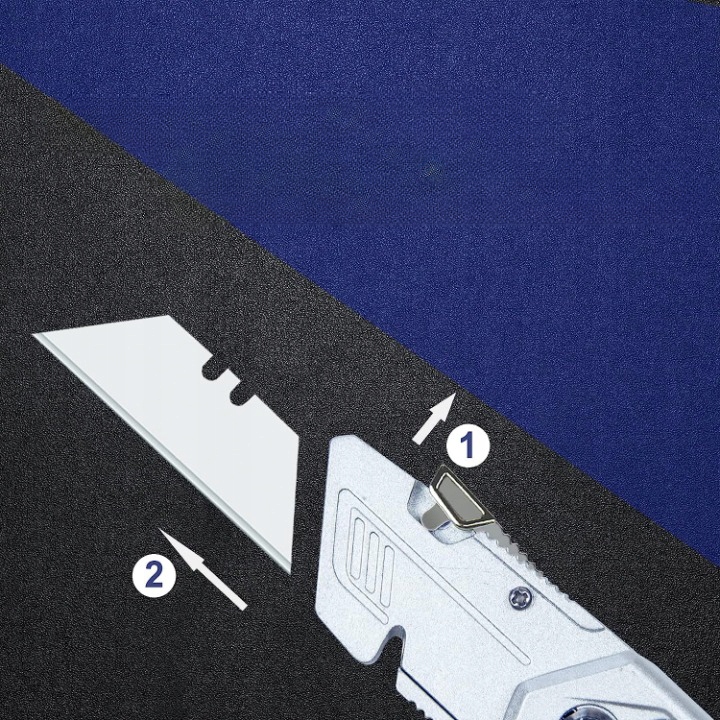 - Леза: двосторонні, змінні (стандартний трапецієподібний 19x60, додаткові 3 леза в наборі, заховані в корпусі ножа)