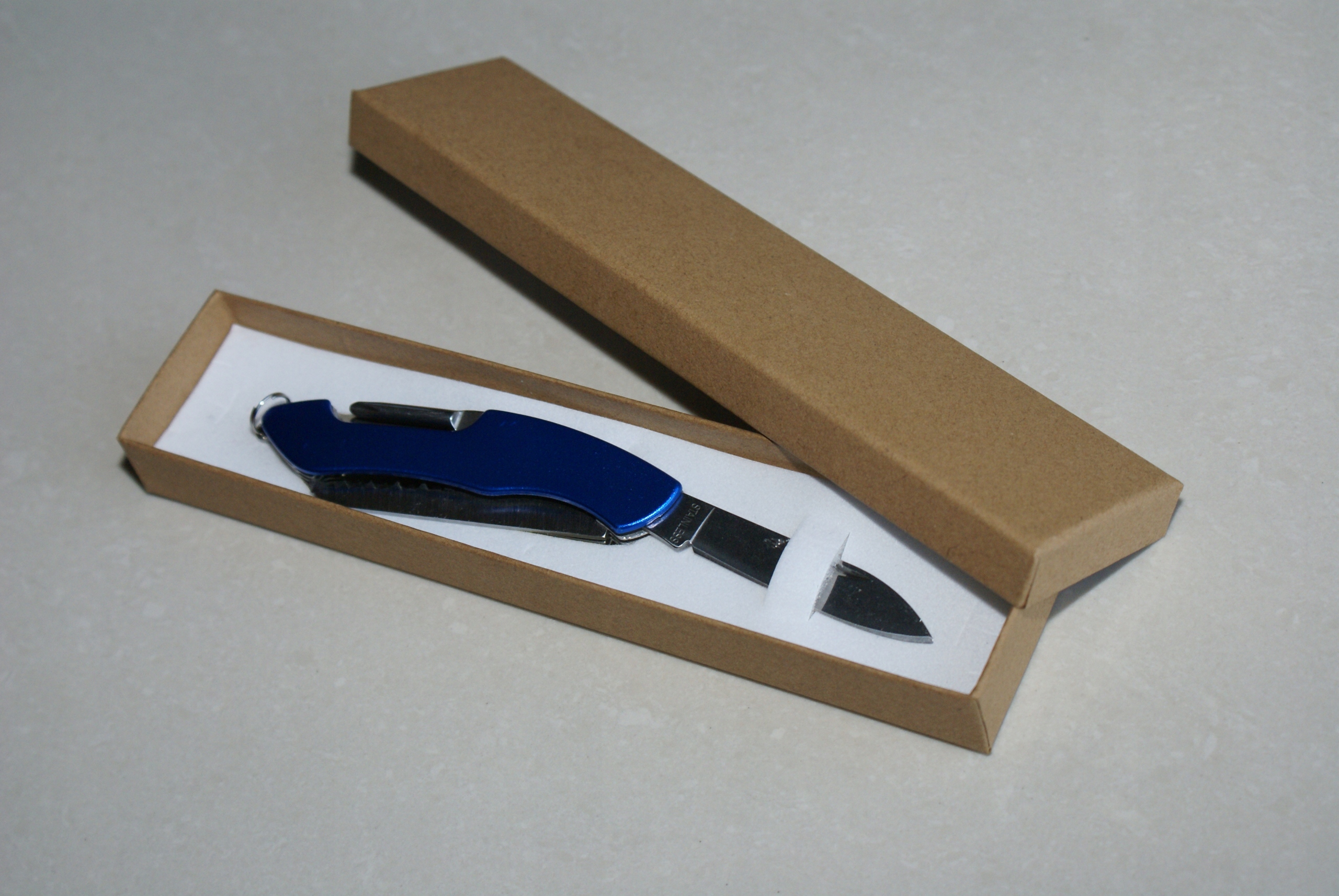 Пропонує елегантний синій кишеньковий ніж із вашим гравіюванням.