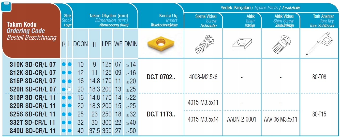 Ніж токарно-расточувальний AKKO S32T SD-CR 11 DCMT 11T3