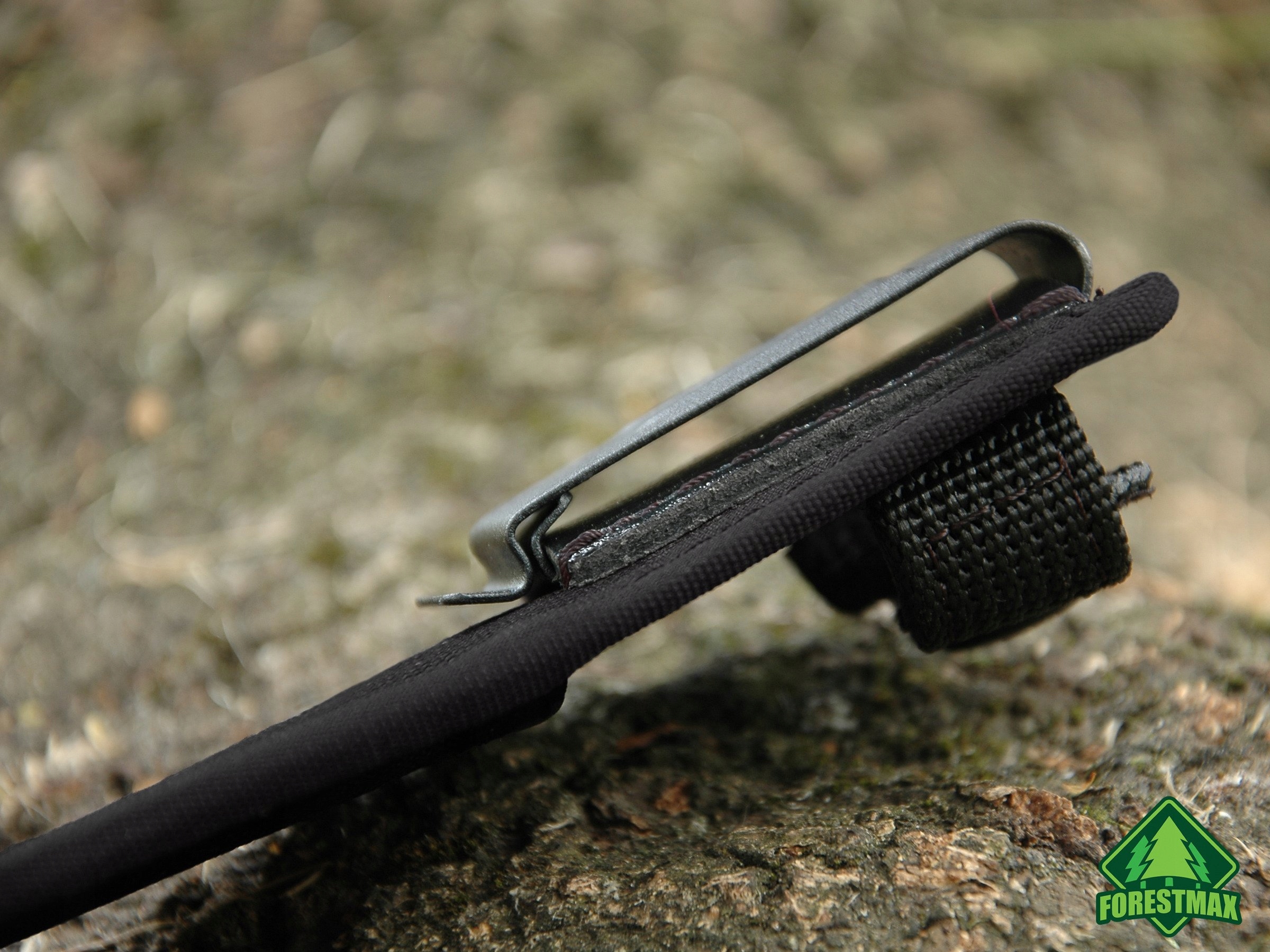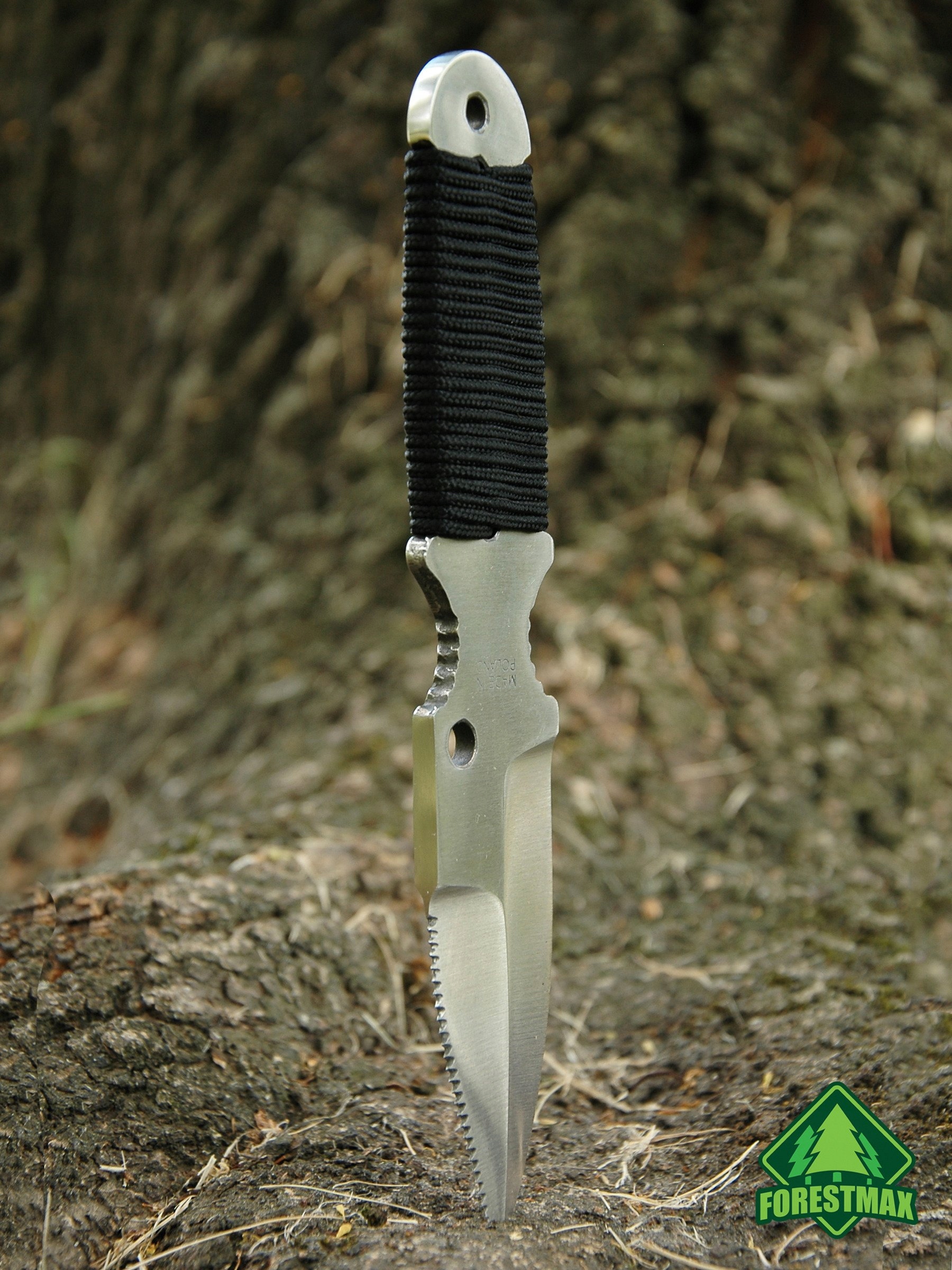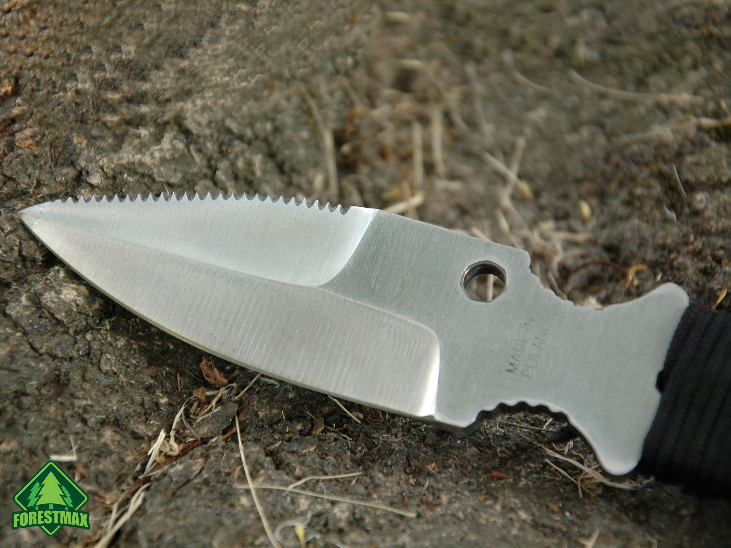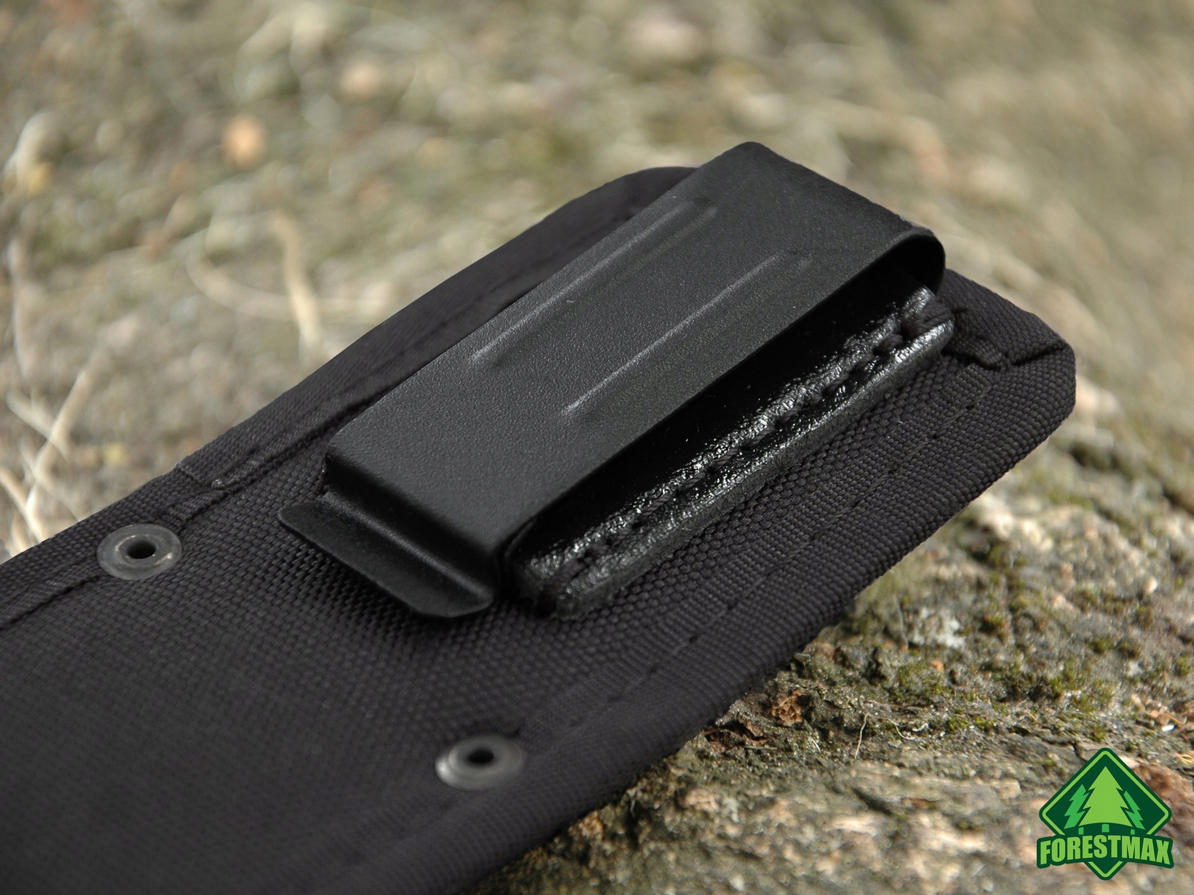 Рукоятка виготовлена з міцного нейлону мотузкаb>, яку при необхідності можна замінити іншою підкладкою. До ножа входять зручні та легкі піхви, виготовлені з міцної стрічки, яка має металеву кліпсу, що дозволяє кріпити ніж до пояса, рюкзака чи жилета.
