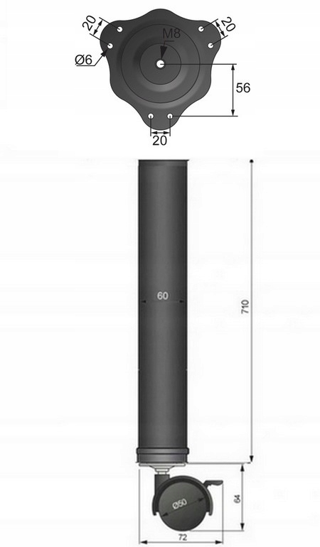 НІЖКА СТОЛУ З КОЛЕСОМ І ГАЛЬМОМ, ЧОРНА АКЦІЯ