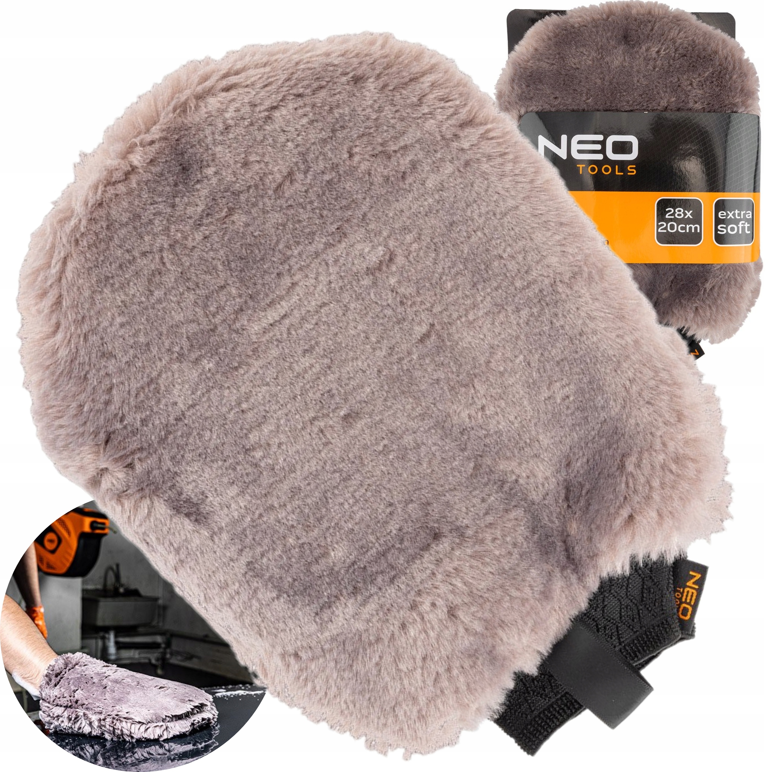 ⭐Рукавичка NEO TOOLS має дуже ніжні волокна та стійка до хімічних речовин. Призначений для миття кузова, знижує ризик подряпати поверхню.