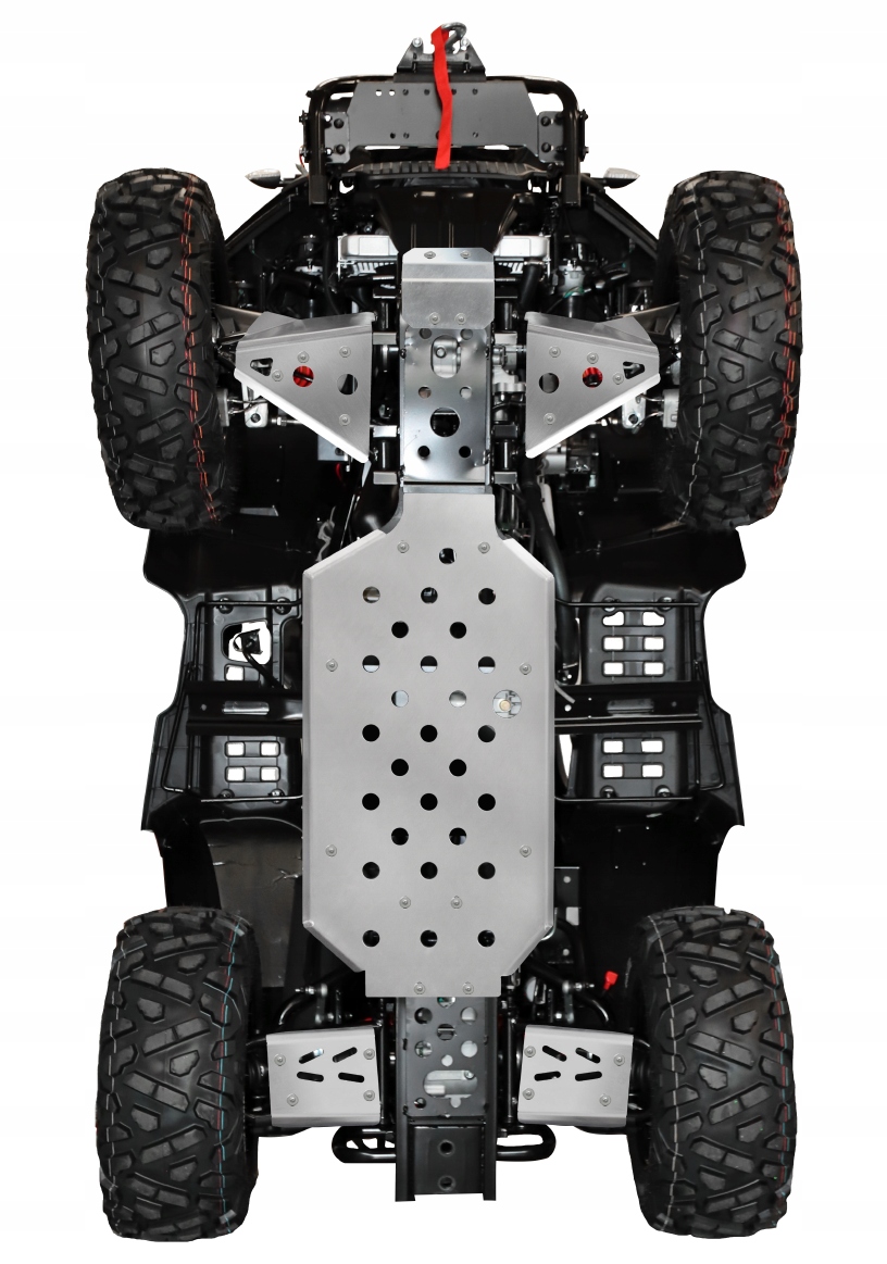 Набір алюмінієвих пластин шасі "Shark" є ідеальним рішенням для повного захисту шасі квадроцикла від механічних пошкоджень. Виготовлені з легкого, але міцного алюмінію, пластини захищають автомобіль від каміння та виступаючих перешкод. Крім того, кришки рокерів захищають корпус двигуна від ударів.
