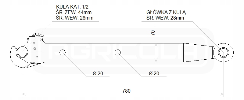 Набір з двох бічних тяг з гачком і кулькою, категорія 1/2 , призначений для тракторів URSUS C- 355, C-360, C-4011 та інших похідних